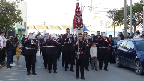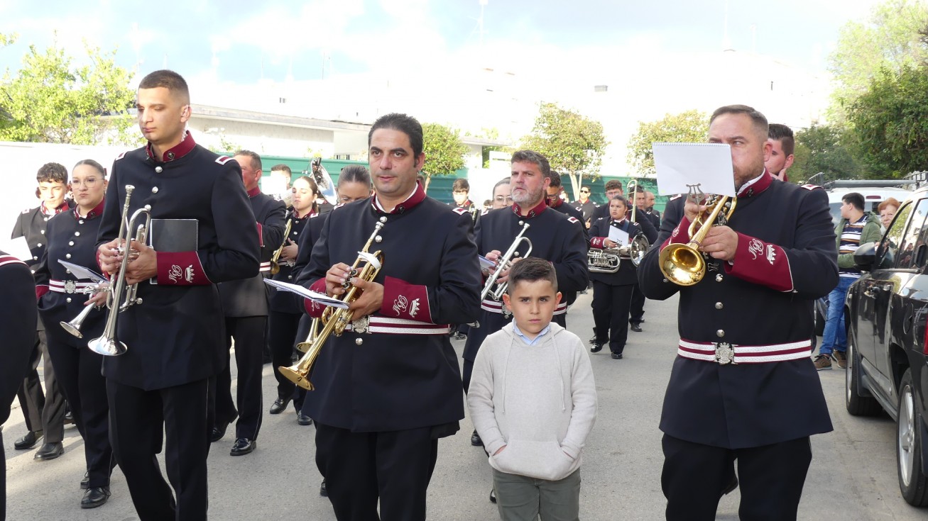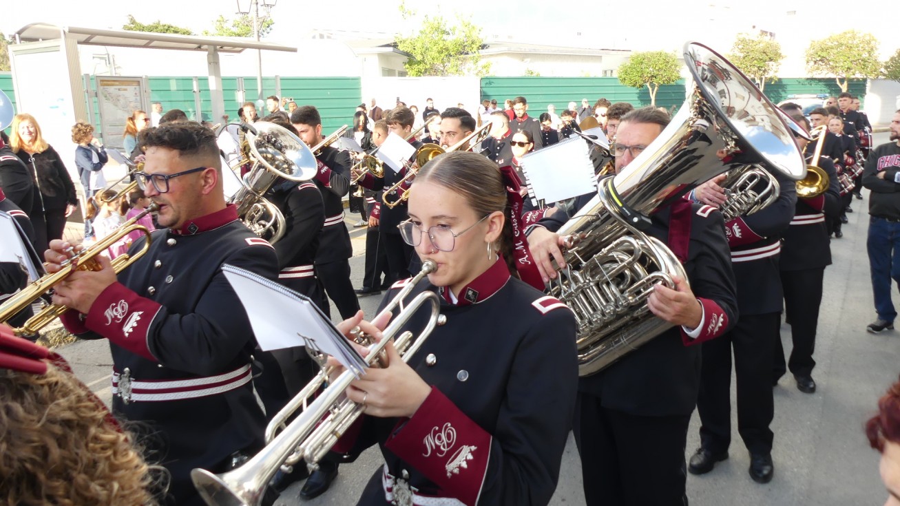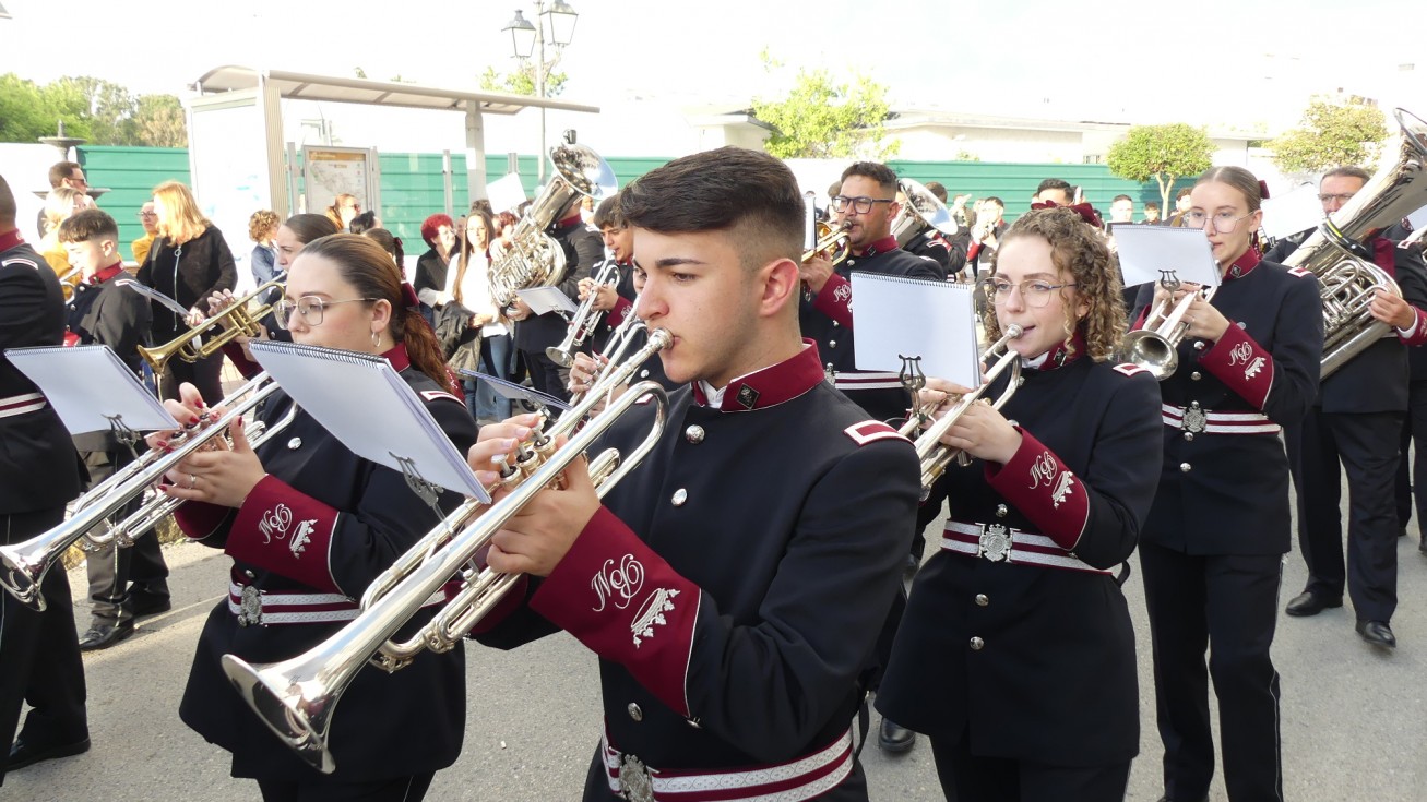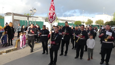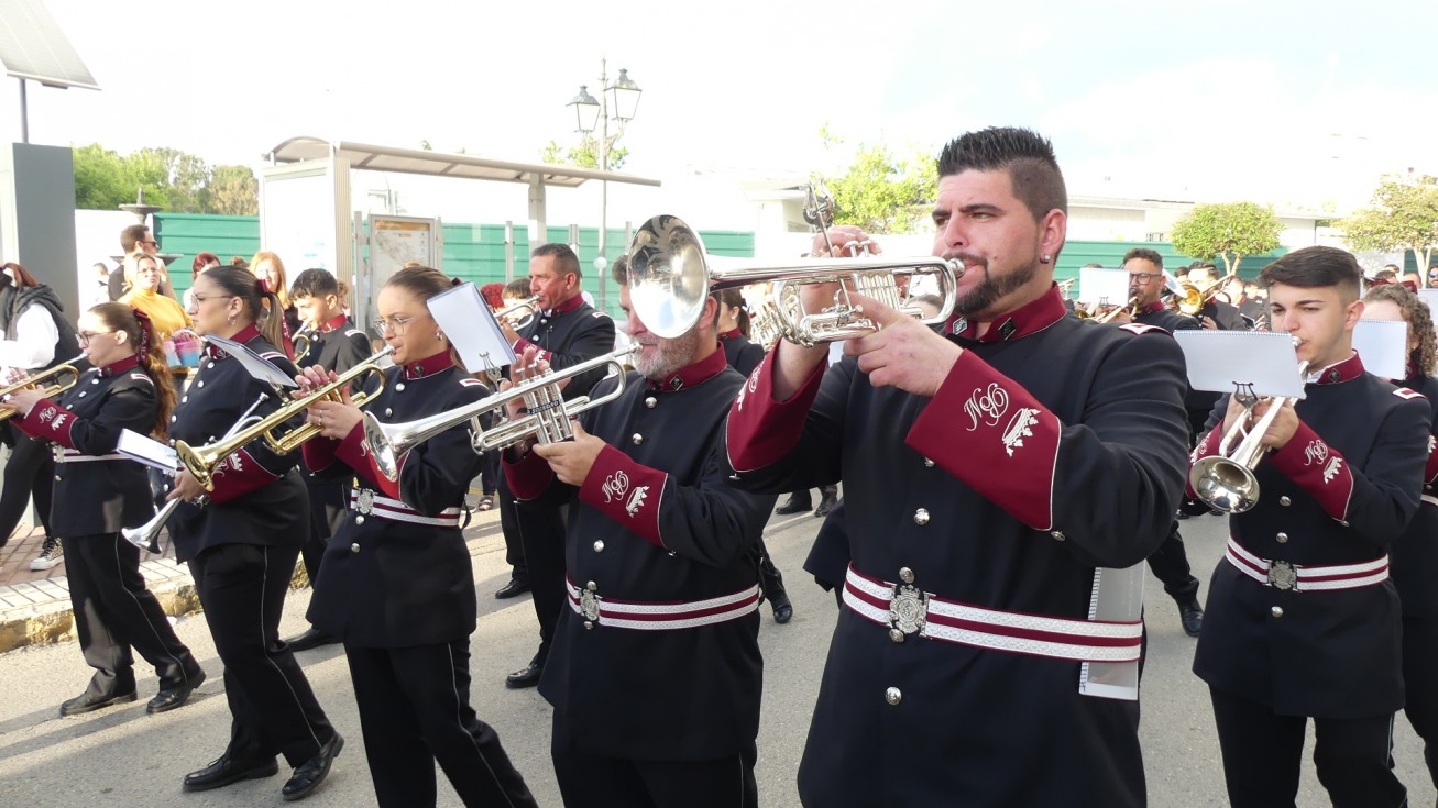 La Agrupación Musical Cristo de la Buena Muerte de Paterna (Cádiz) se ha encargado del acompañamiento musical del paso con marchas que han permitido que los costaleros se lucieran.