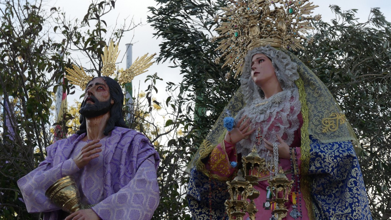 Desde el colegio de Luis Ponce de León ha salido el único paso que portaba a las dos imágenes, donde finalmente no ha estado el Ángel Custodio en una decisión de última hora por parte de la asociación 'Getsemaní' que también ha modificado el itinerario previsto acortándolo ante cierto temor por amenaza de lluvia.