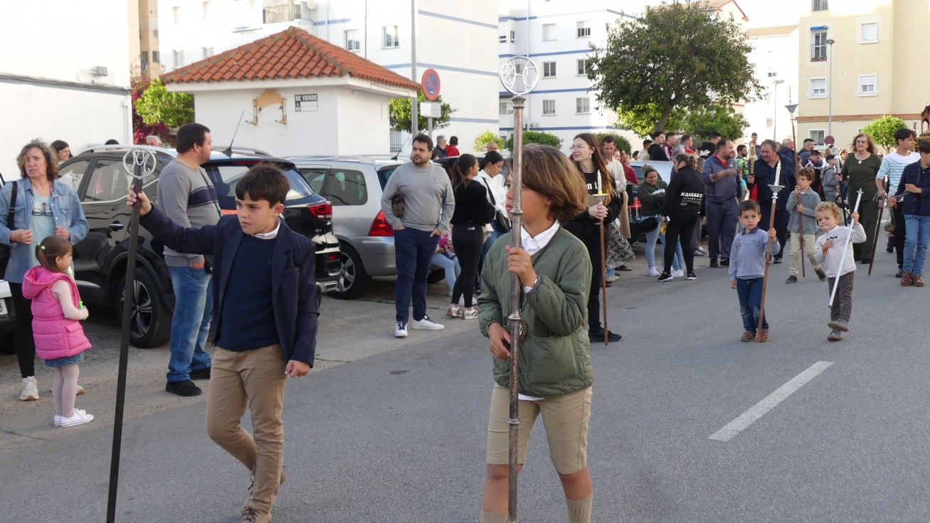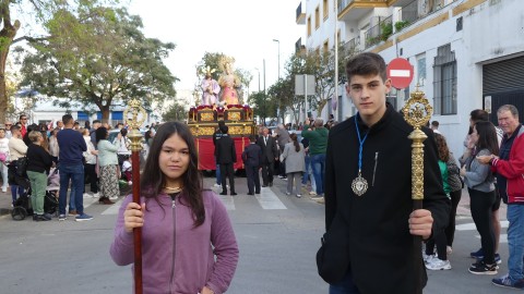 El tiempo que han estado por las calles, que este año por las obras no ha podido centrarse en la barriada San Antonio, para quien la asociación realiza tanto esta como la procesión infantil de los niños del Viernes de Dolores, los roteños han arropado el discurrir del paso, que contaba con los jóvenes capataces Manuel Moreno Heredia y Migue Ángel González Ruiz-Henestrosa, a los que también se pudo ver ayer.