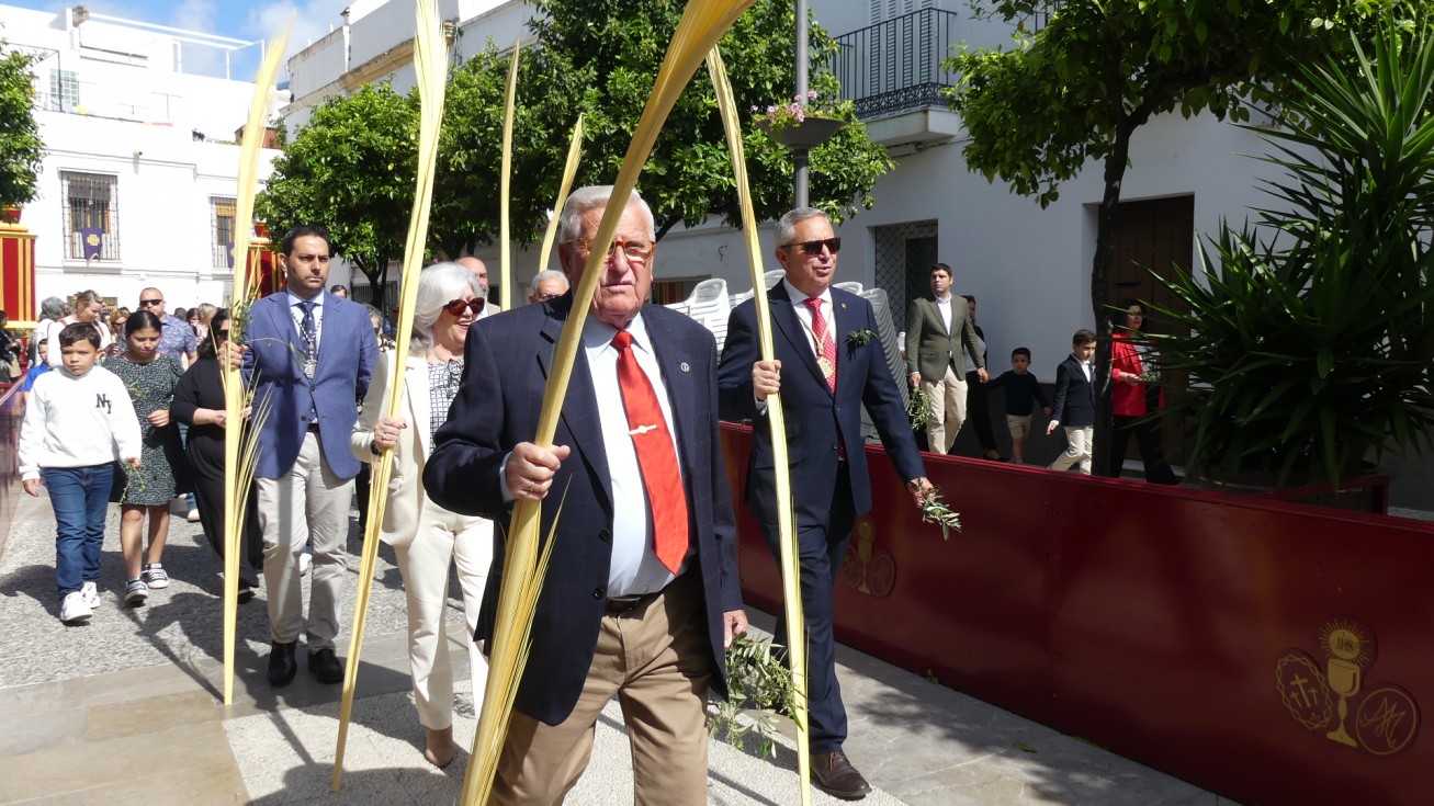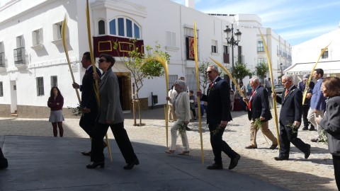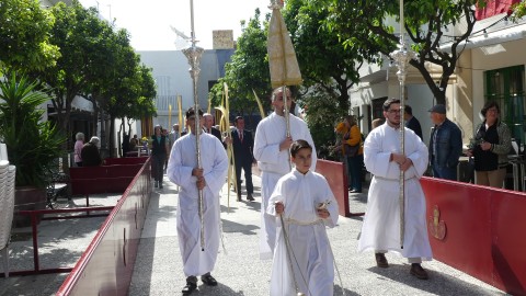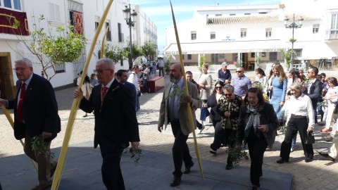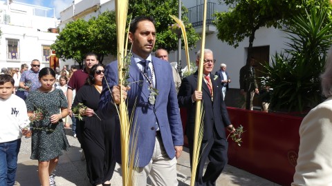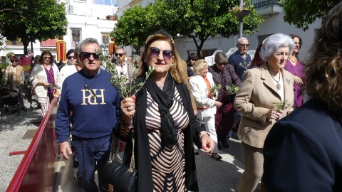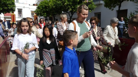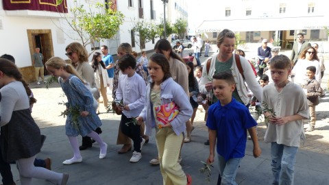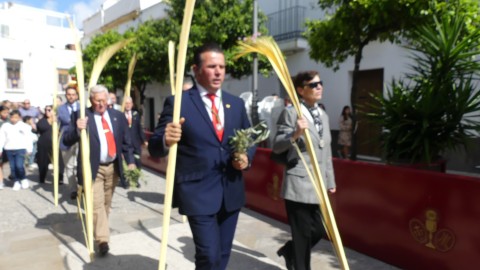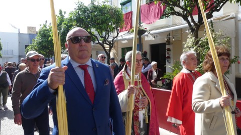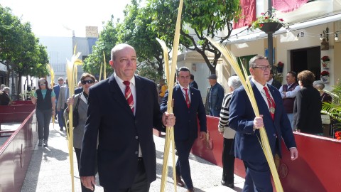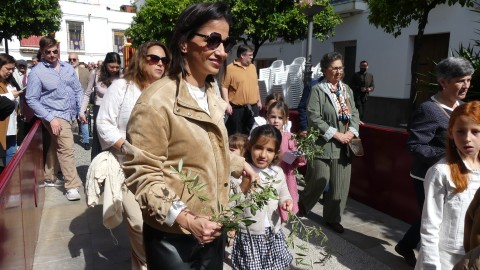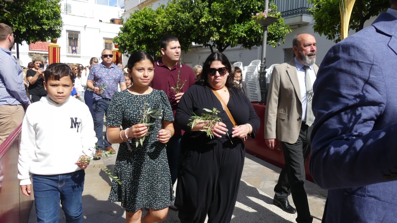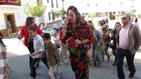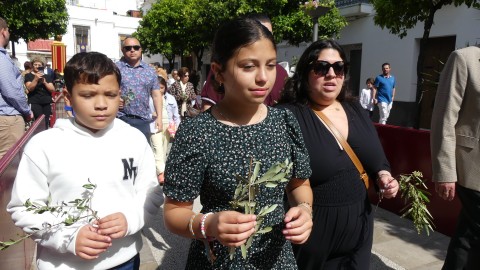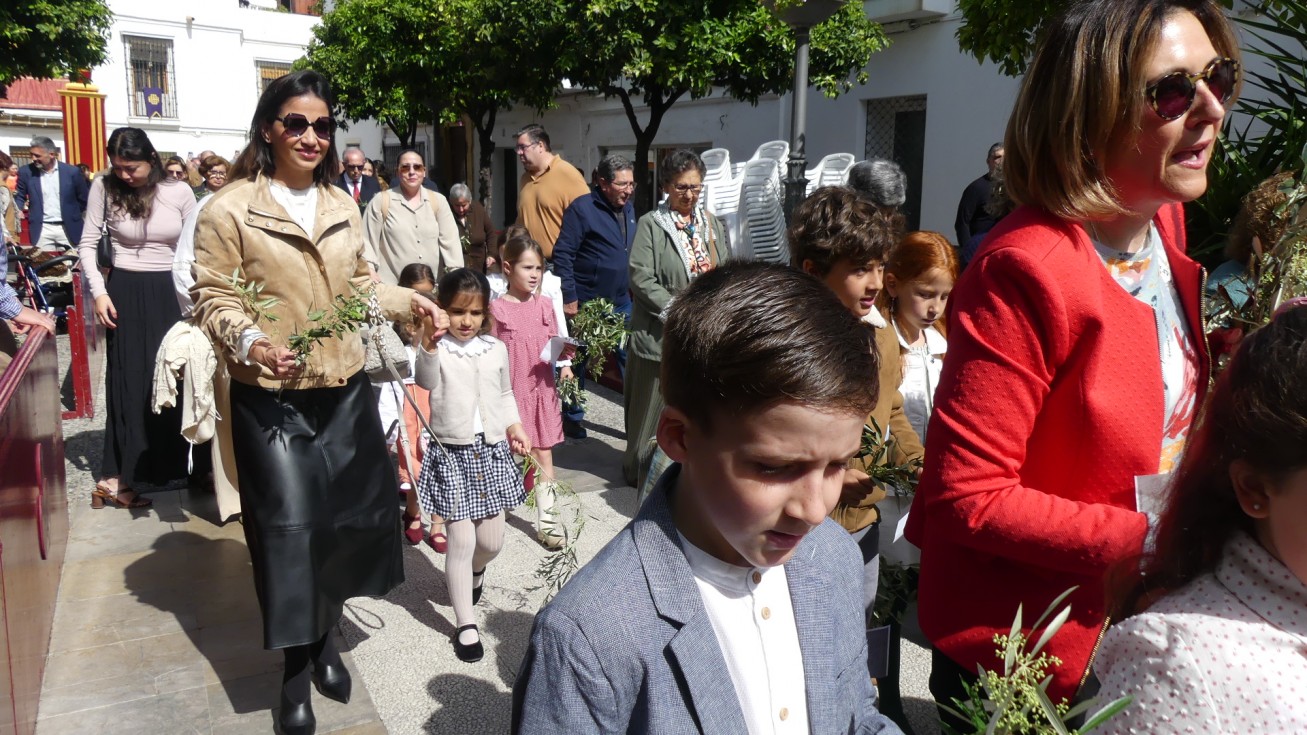 Una vez bendecidos los ramos que los ciudadanos han podido coger de unas bolsas, y las palmas que portaban los hermanos mayores, ha comenzado un pequeño recorrido hasta la parroquia de Nuestra Señora de la O, abriendo paso el cuerpo de acólitos con la cruz y los ciriales, seguido del sacerdote y el diácono, los hermanos con las palmas y detrás, los niños que se preparan para la Primera Comunión y los fieles con sus ramas de olivos bendecidas.