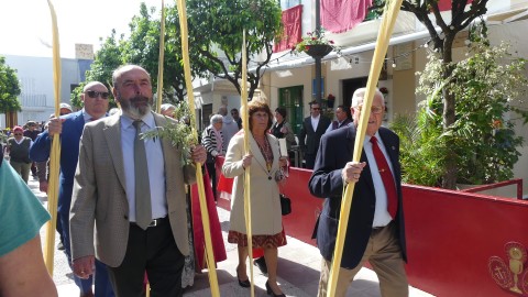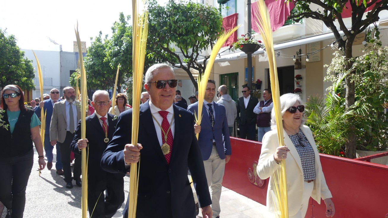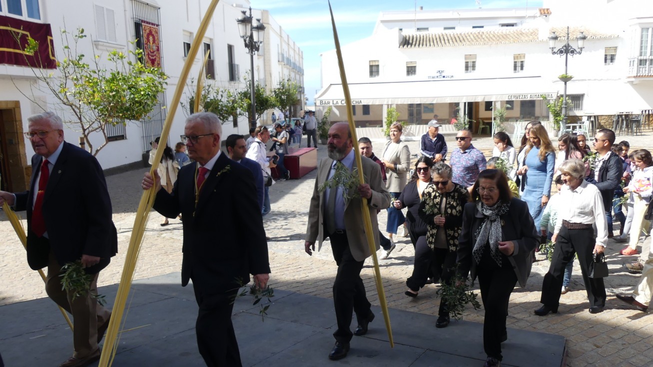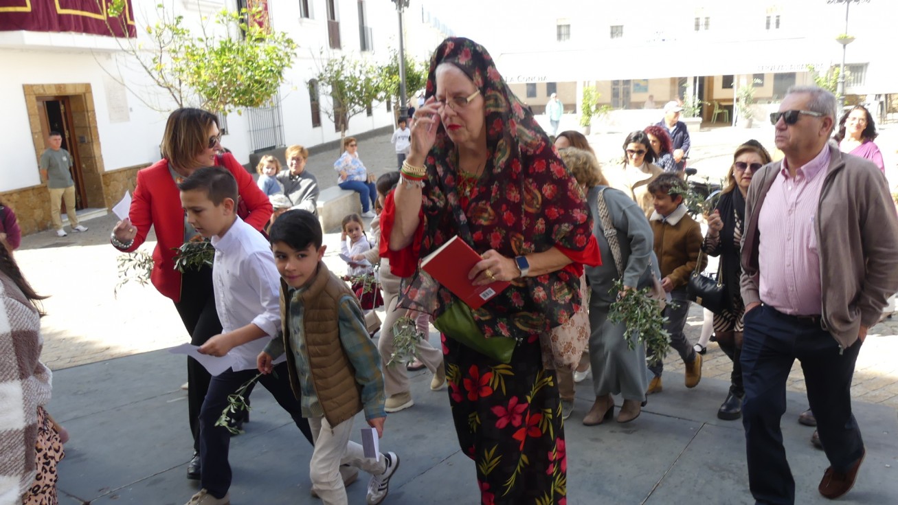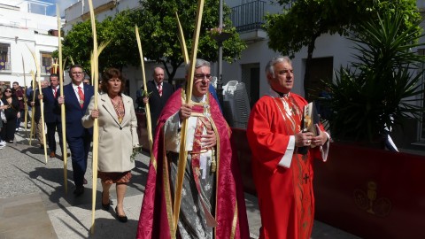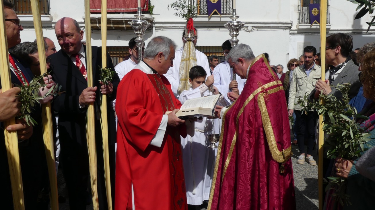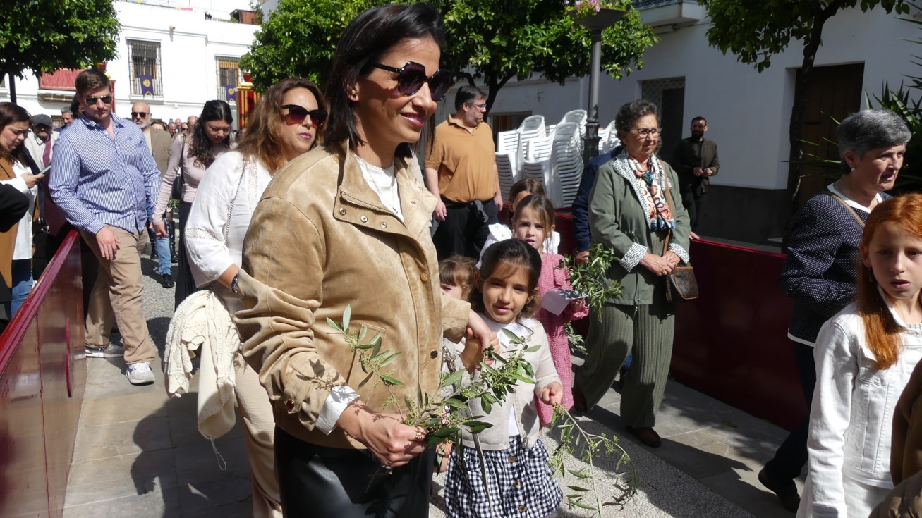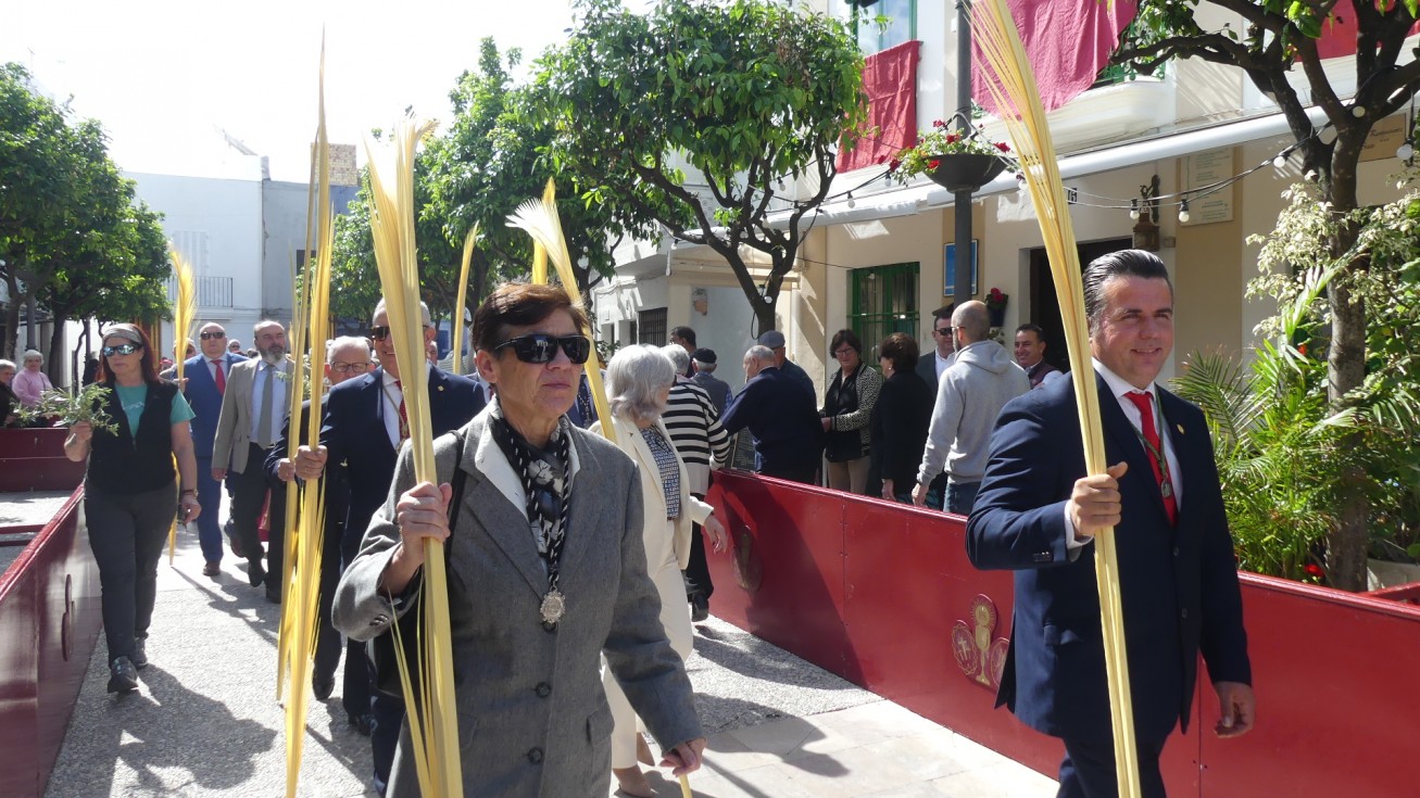 La bendición de palmas y olivos rememora aquella entrada triunfal de Jesús en Jerusalén aclamado por cantos que hoy se han cantado por el pueblo.