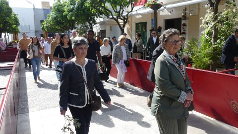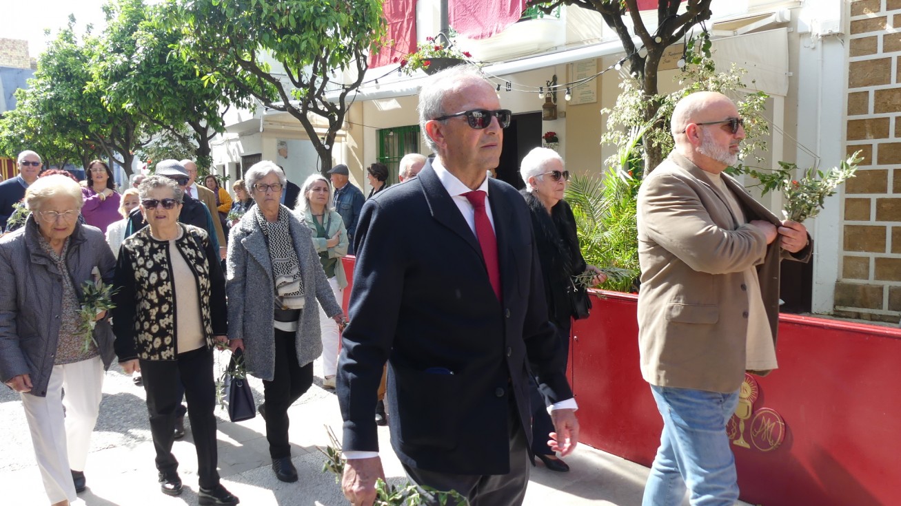 El cura párroco de la iglesia de Nuestra Señora de la O, y asistente eclesiástico del Consejo Local de Hermandades y Cofradías, Santiago Gassín, se ha encargado de esta bendición que este año cambiaba su ubicación de la plaza San Roque a la plaza Barroso, donde se han dado cita hermanos mayores de las distintas hermandades de Rota, niños de catequesis y fieles.