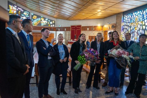 Los concejales Auxiliadora Izquierdo, Daniel Cros, Macarena Lorente y Nazaret Herrera han compartido con la hermana mayor de la hermandad, Macarena Ruiz-Henestrosa, y miembros de la junta de gobierno, unos minutos de charla donde han mostrado las ganas de salir a la calle, además de un estreno deseado como la corona de plata que la Esperanza lucirá en este Lunes Santo.