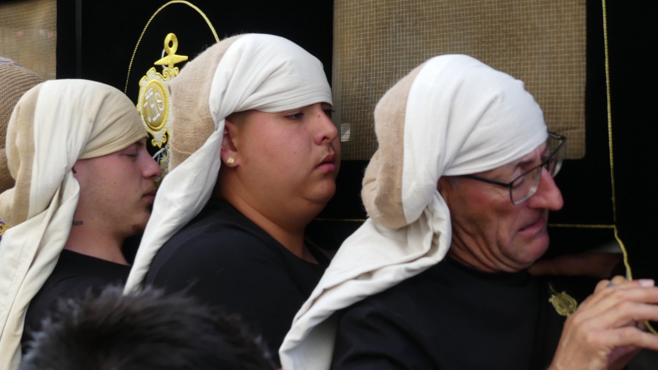 Guiadas por José Álvarez Moreno, las cargadoras se han lucido con su tradicional paso de costero a costero que las caracteriza, al son de las marchas de la Banda de Música Gailín de Puerto Serrano (Cádiz), que han tenido especial lucimiento en algunos puntos del recorrido.