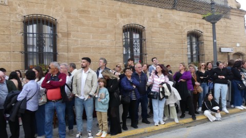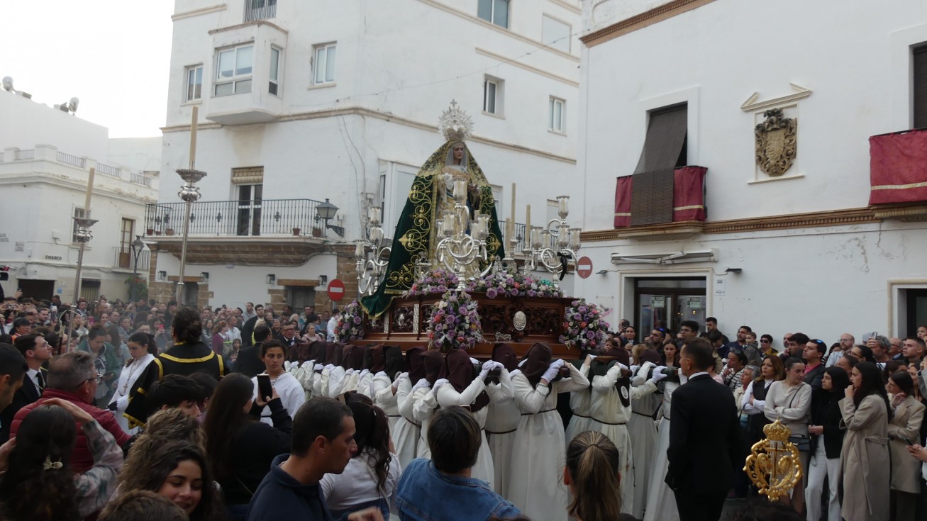 Este año como novedad, y por primera vez, la virgen de los ojos verdes ha podido lucir una corona de plata propia donada por un grupo de hermanos, que ha rematado su imagen en la calle y que los ciudadanos que estaban en la puerta de la parroquia han podido ver cómo se le colocaba ya que por las dimensiones de la puerta, ha habido que coronarla en el exterior. Tras ese momento, se ha dado paso a otro especial, que ya se vivió el año pasado y que permite que los primeros metros de la cuadrilla integrada únicamente por mujeres para llevar sobre sus hombros a la Esperanza, hayan sido al son de la plegaria cantada que la roteña Rocío Ruiz le ha cantado a la virgen, acompañada de su hijo a la guitarra. Momentos de fervor que daban comienzo a la estación de penitencia.