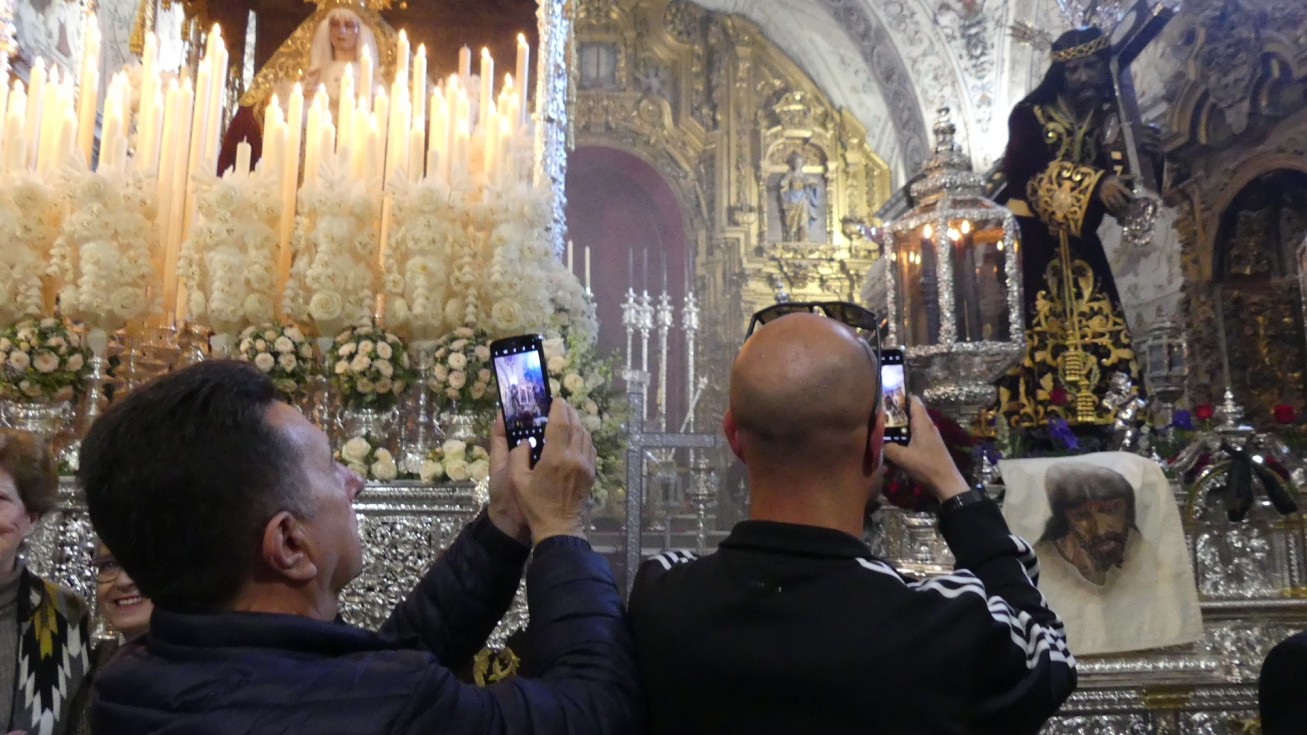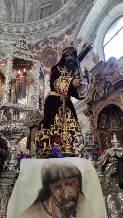 Como es tradicional, en la mañana del Jueves Santo, en las horas previas a iniciar su estación de penitencia, la capilla de Nuestro Padre Jesús Nazareno se abre al público para que fieles y devotos puedan visitarlo y realizar sus ofrendas. Son unos momentos de mucho trasiego de público porque todos quieren ver al Señor de Rota y a María Santísima de la Amargura en sus pasos preparados para una larga Madrugá roteña.