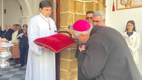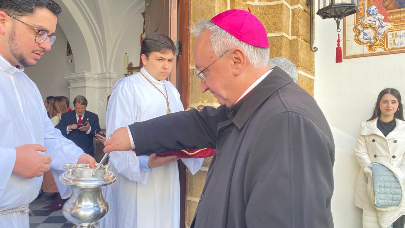 El obispo visita la Hermandad de los Dolores y protagoniza la primera llamada del paso
