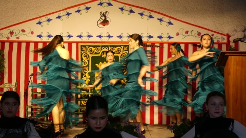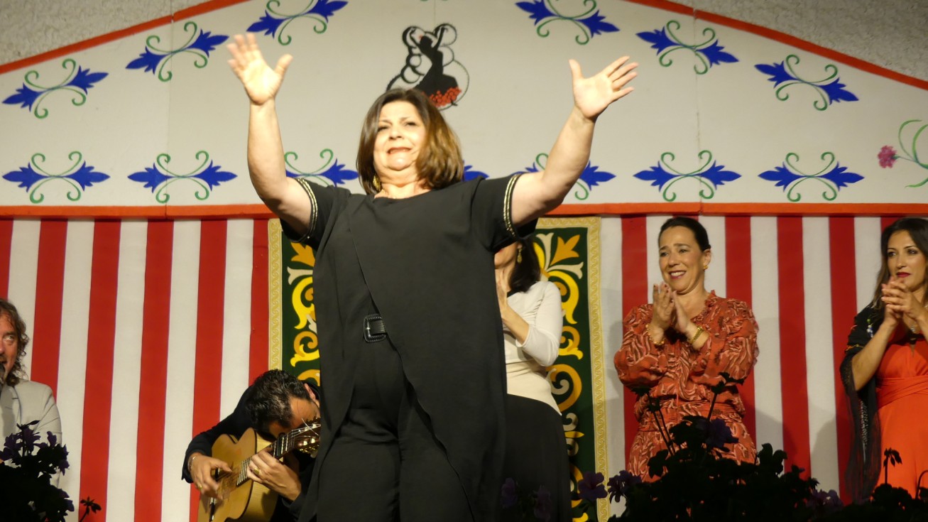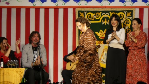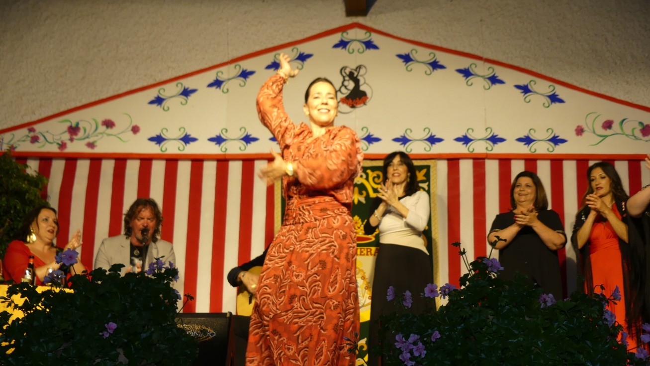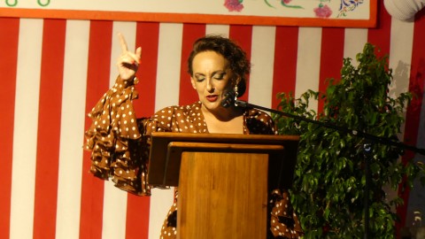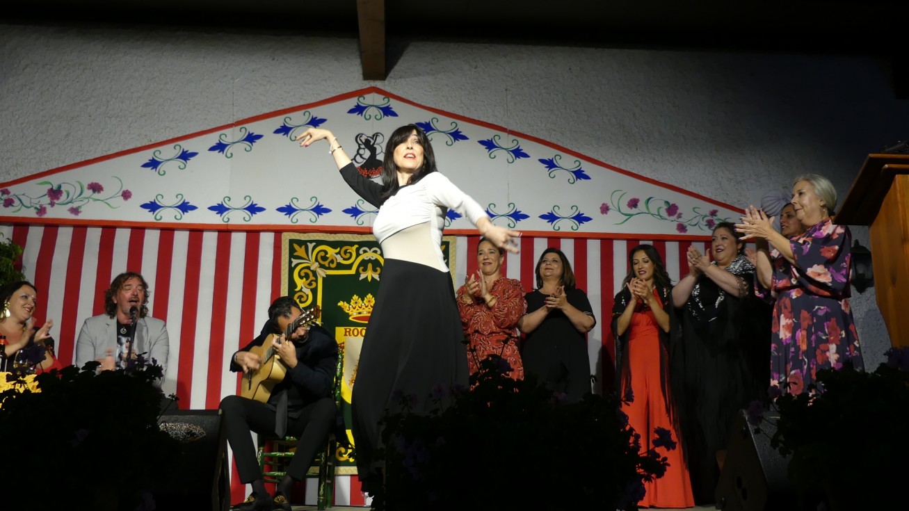El baile ha estado presente de principio a final, abriendo boca un grupo de alumnas de Laura Pirri para dar paso a una pregonera exultante y muy flamenca que por el pasillo de la caseta iba anunciando lo que estaba a punto de ocurrir: la Feria de Primavera está a la vuelta de la esquina y ella, ni corta, ni perezosa, comenzaba haciendo gala de su arte flamenco.