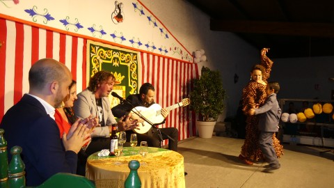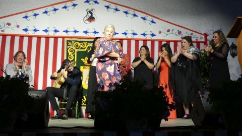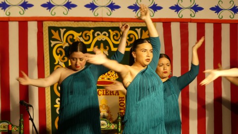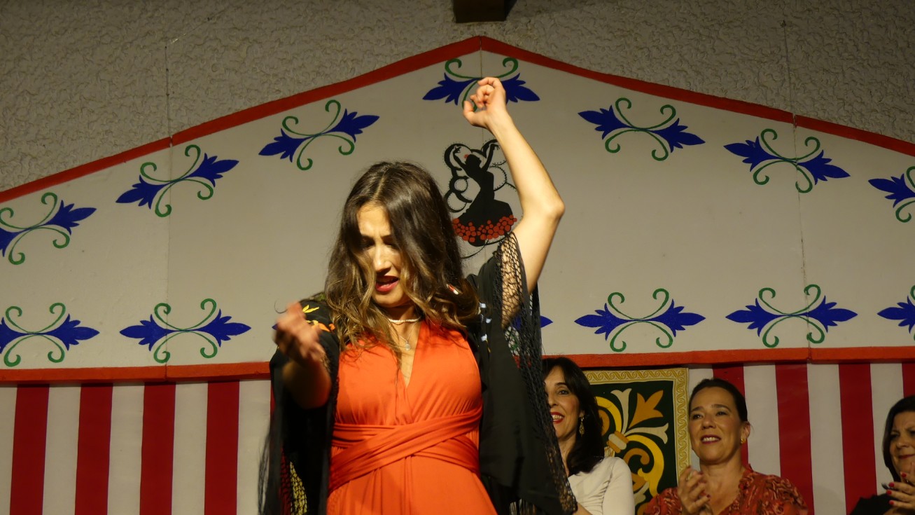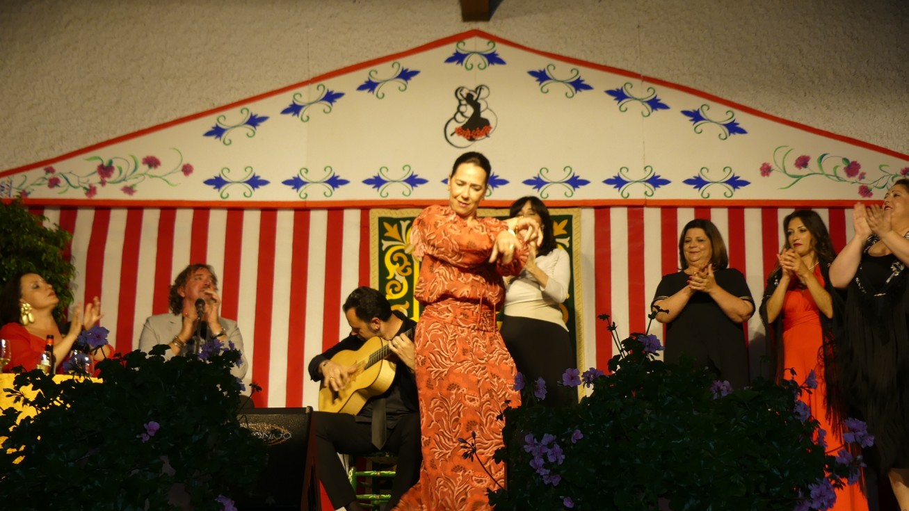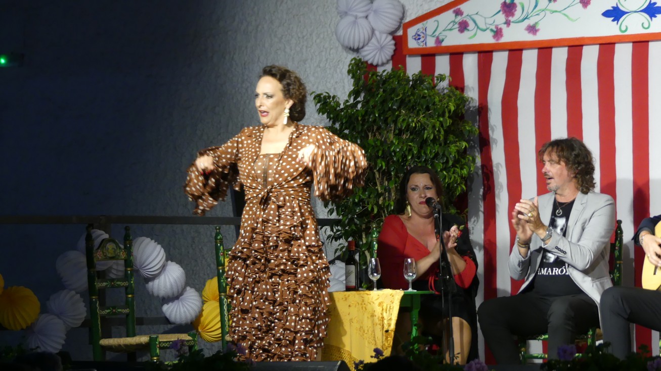 El baile ha estado presente de principio a final, abriendo boca un grupo de alumnas de Laura Pirri para dar paso a una pregonera exultante y muy flamenca que por el pasillo de la caseta iba anunciando lo que estaba a punto de ocurrir: la Feria de Primavera está a la vuelta de la esquina y ella, ni corta, ni perezosa, comenzaba haciendo gala de su arte flamenco.
