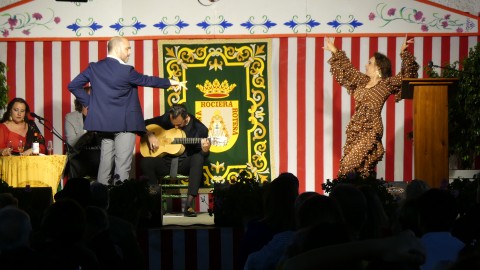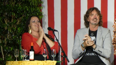 Haciendo gala de los distintos espectáculos que desde 2011 ha ido montando con su escuela y estrenando con éxito en Rota, subía al escenario Lola Granados para recitar unos versos mientras la pregonera se arrancaba en un baile pasional con su amigo y compañero de batallas y escenarios José Carlos Marchante, despertando así una primavera en la que florece la feria.