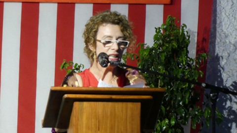 Entre recuerdos de niña y de adulta, compartidos con su familia, con sus alumnas y ahora con su hijo y su marido, iba la pregonera hablando de su particular feria acordándose de esos primeros pasos sobre el albero, en el ambiente de la caseta de la Peña Club Deportivo Rota donde su padre le enseñó a vivir los días intensos de una feria para la que su madre cosía meses antes para que su niña tuviera los trajes más bonitos del Real.