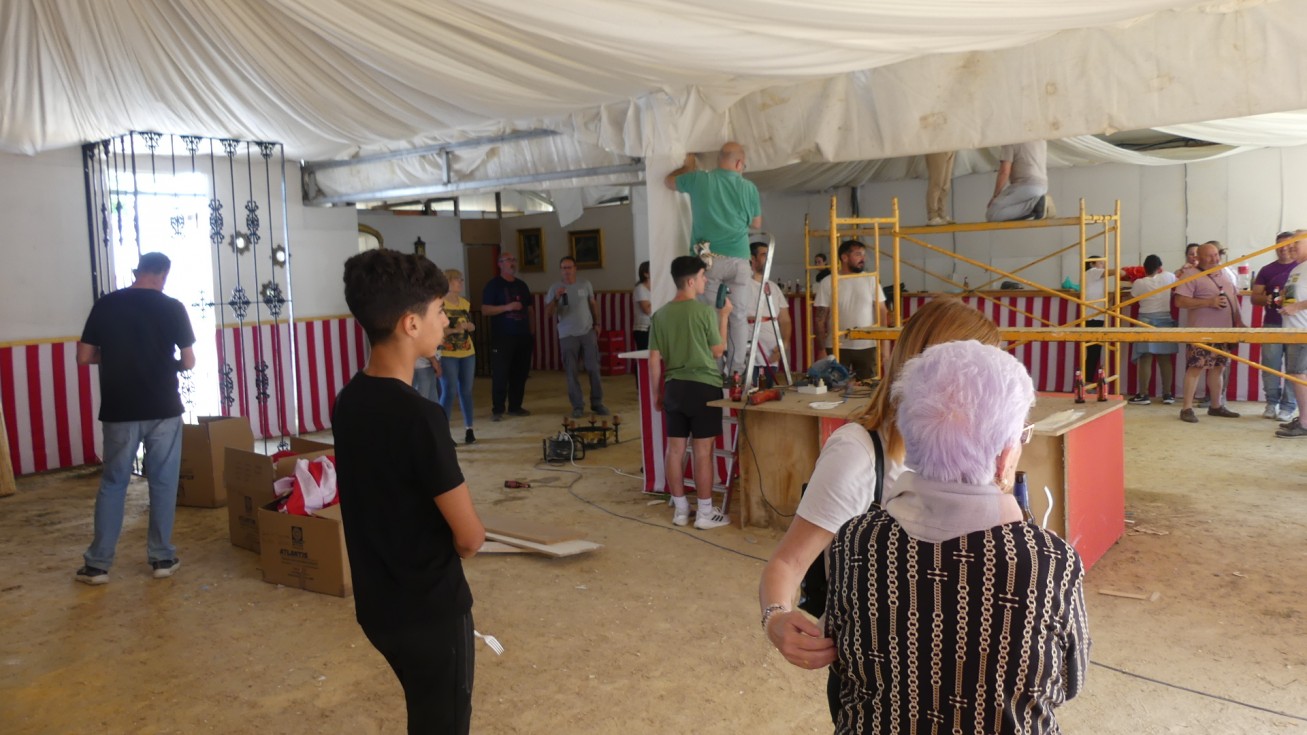 Este año habrá 18 casetas portátiles y 8 fijas abiertas al público sin restricciones, dispuestas a acoger a todo aquel que quiera entrar a tomar una copa, echar un baile y reencontrarse con amigos. Antes de eso, es necesario que los socios y las peñas hagan una parte muy importante del trabajo de montaje que se suele ver en este fin de semana previo. Hoy domingo, ya eran muchas las casetas que mostraban una buena parte del trabajo adelantado y estaban casi listas para ir colocando vitrinas, mesas, neveras, etc.; otras aún iban algo más atrasadas pero todas saben que el miércoles no faltará ni un detalle para que los feriantes disfruten al máximo.