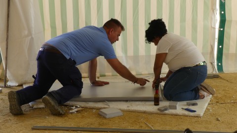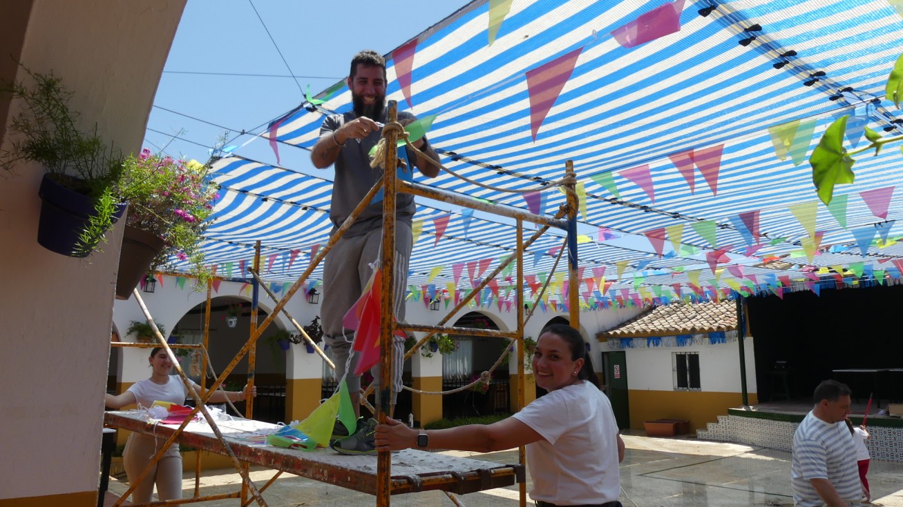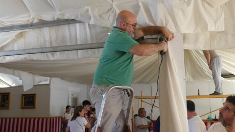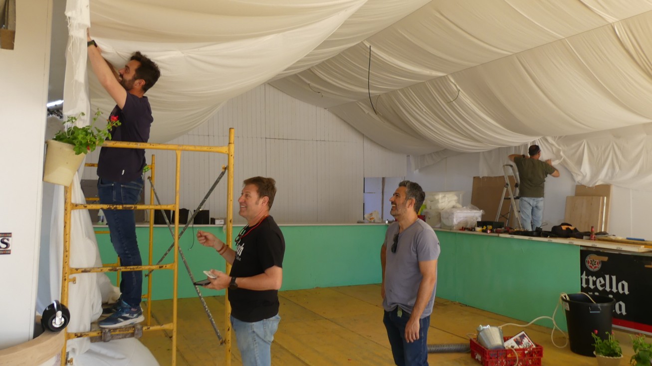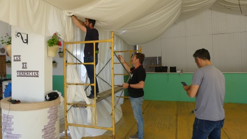 Las peñas y sus socios preparan las casetas para la 82ª Feria de Primavera de Rota