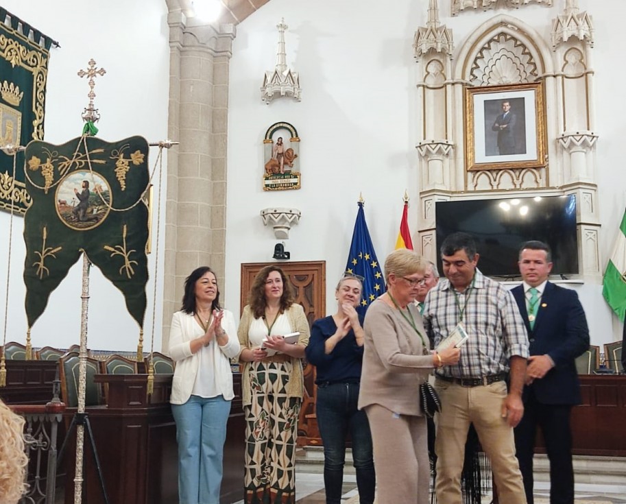 El acto de ayer, contó con la presencia del pitero de San Isidro, Antonio Vázquez, además de con miembros de la Corporación municipal, del director espiritual de la hermandad, Santiago Gassín, una representación de la permanente del Consejo Local de Hermandades y Cofradías, de la Hermandad del Rocío de Rota y de la Hermandad de Regla del Pinar de Chipiona.