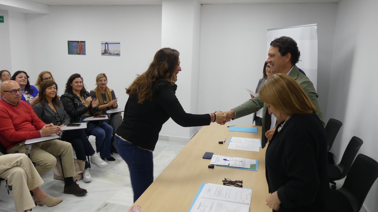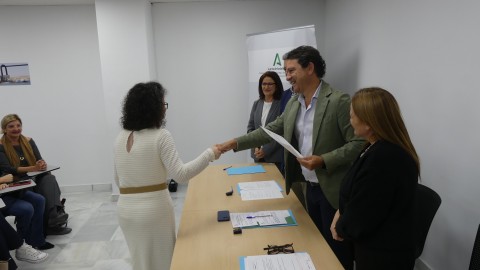 En el acto de clausura para unos alumnos y de bienvenida para otros, han estado presentes el alcalde de Rota, Javier Ruiz, el delegado territorial de Empleo, Empresa y Trabajo Autónomo de la Junta, Daniel Sánchez, la delegada municipal de Desarrollo Económico, Encarna Niño, y la directora del programa que se ha impartido en la localidad.