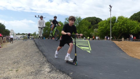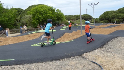 Una puesta de largo que ha permitido ver en su esplendor todas las posibilidades que ofrece este nuevo espacio compuesto por una meseta principal de acceso y diferentes rectas y curvas peraltadas, dotadas de saltos (rollers) y terminaciones peraltadas. Es un circuito que, como algunos usuarios de todas las edades han podido comprobar hoy, ayuda a aprovechar la inercia de las subidas y bajadas para desplazarse en bicicleta o cualquier vehículo a ruedas y sin motor, haciendo más divertido este equipamiento deportivo y de ocio. Especialmente niños, han podido divertirse hoy en estas pistas añadiendo a sus paseos en bici o recorridos en patín o patines, un plus de adrenalina.