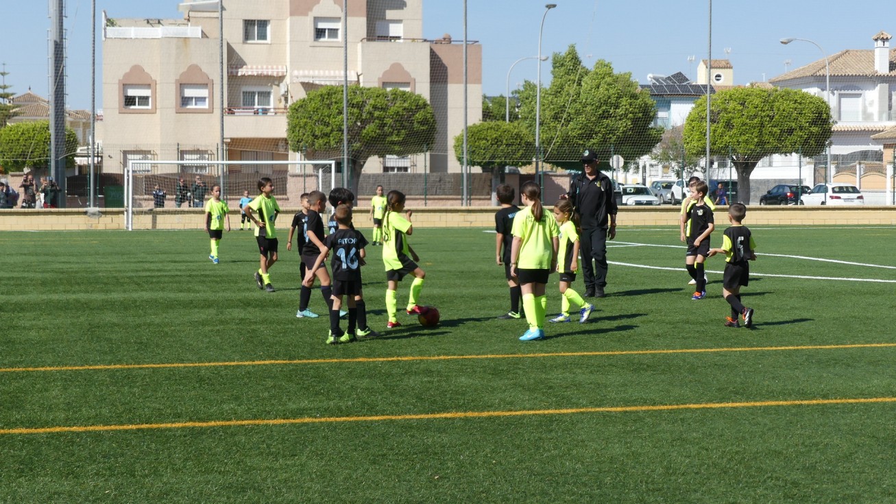 Los equipos de las escalas inferiores de la EFI Meva, la U.D. Roteña, el Club Deportivo Rosario, CD Rota, el Genuine y Club de Fútbol Femenino 'Villa de Rota' fueron los protagonistas de esta jornada a los que el delegado municipal, Pablo Gómez, agradeció su presencia y compromiso, destacando que esta es una propuesta de fútbol 7 para divertirse, para fomentar los valores de respeto y tolerancia a edades tempranas y para disfrutar a la vez de la convivencia con otros clubes.