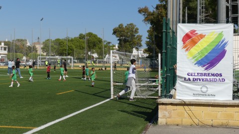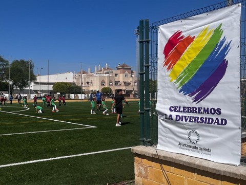 El complejo deportivo 'Belén López Morales' recibió ayer a más de un centenar de jugadores de distintos clubes de fútbol de la localidad que participaron en las Jornadas Deportivas por la Diversidad que desde la delegación de Diversidad del Ayuntamiento de Rota se vienen organizando desde hace unos años para conmemorar el Día Internacional contra la LGTBIfobia.