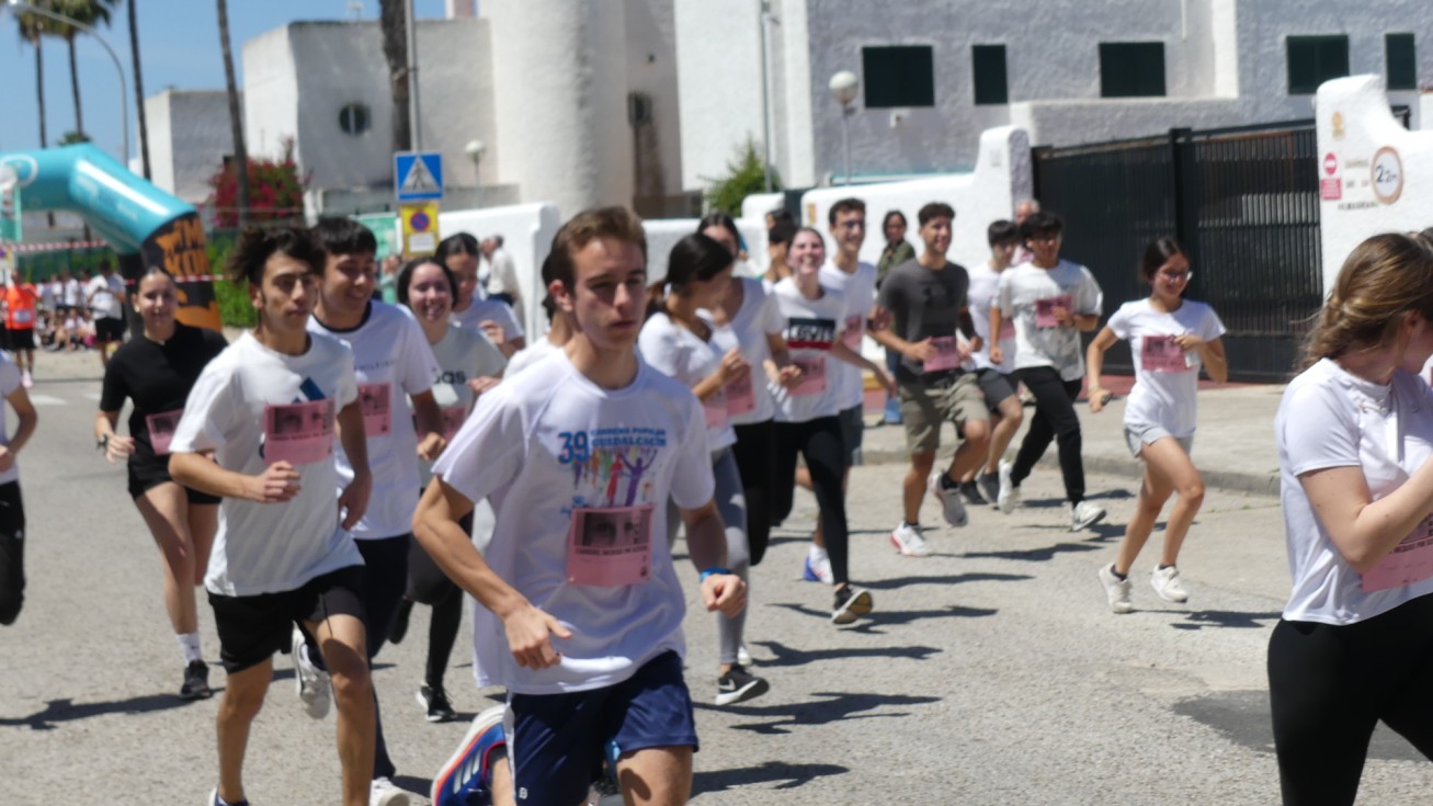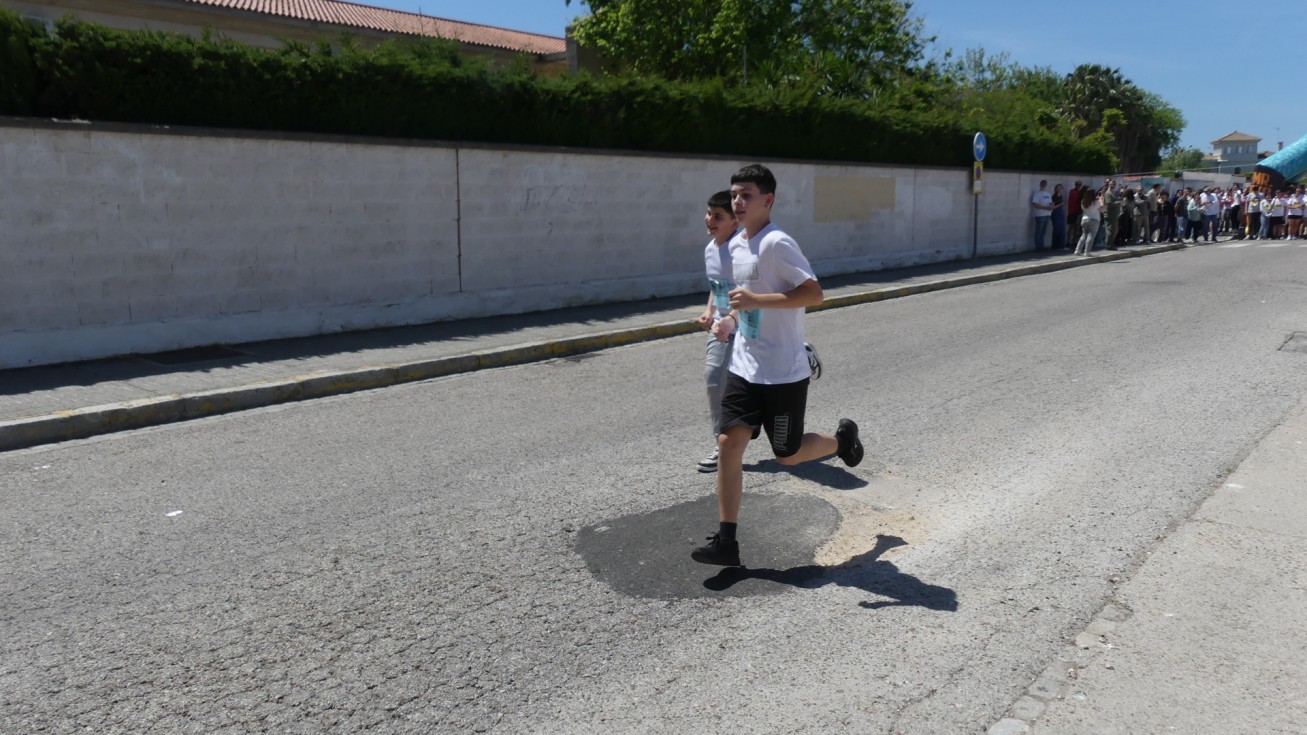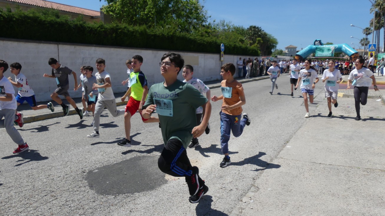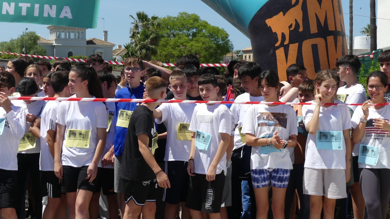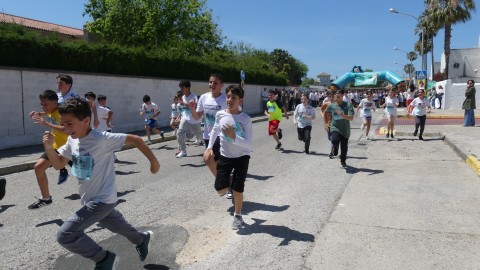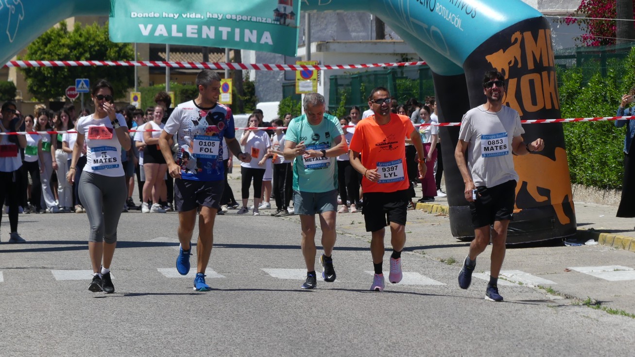 Lo importante hoy, como suele ser habitual en carreras escolares, no era llegar el primero a la meta sino contribuir a dar visibilidad a la enfermedad de Valentina, una pequeña que ha demostrado estar llena de vida pero que su enfermedad la limita en sus movimientos. La FOP es una enfermedad genética que causa formación anormal de hueso en tejidos blandos, de modo que quien la padece, ve cómo progresivamente sus músculos esqueléticos, fascias, tendones y ligamentos se van osificando. El cuerpo reacciona creando un segundo esqueleto, lo que impide especialmente, la movilidad. En España hay 40 casos y en la provincia de Cádiz dos, concretamente, en Jerez.