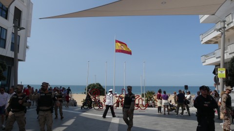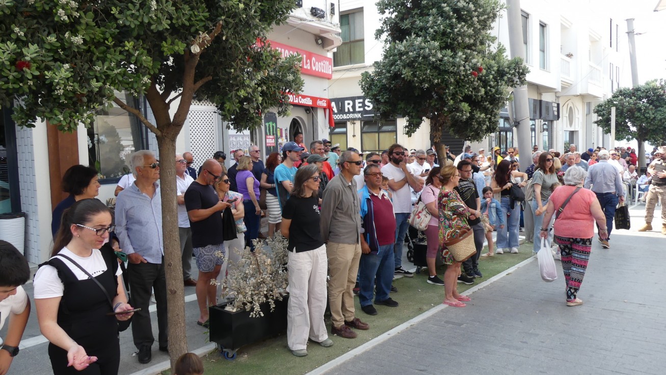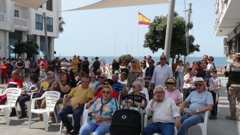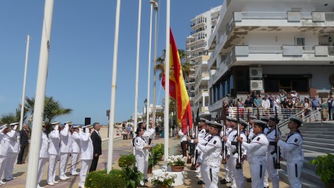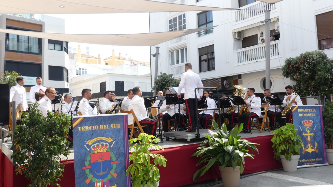 Rota ha sido hoy escenario del acto que la Armada española ha organizado con motivo del XI aniversario de la proclamación del Rey Felipe VI, en el que se ha congregado una amplia representación militar, autoridades civiles además de muchos ciudadanos y curiosos que han disfrutado del concierto de la Unidad de Música del Tercio Sur de la Armada que ha ofrecido un concierto en plena plaza Jesús Nazareno. Este, que era el evento principal, ha estado precedido por un momento más solemne en el que se ha procedido al izado de la bandera de España en uno de los mástiles situado en el paseo marítimo de la Costilla en torno al que se ha congregado el público.