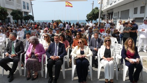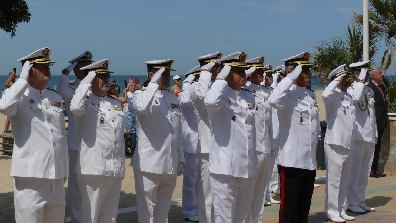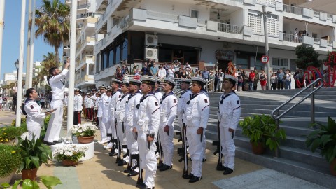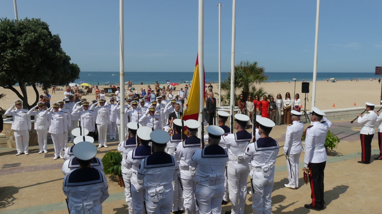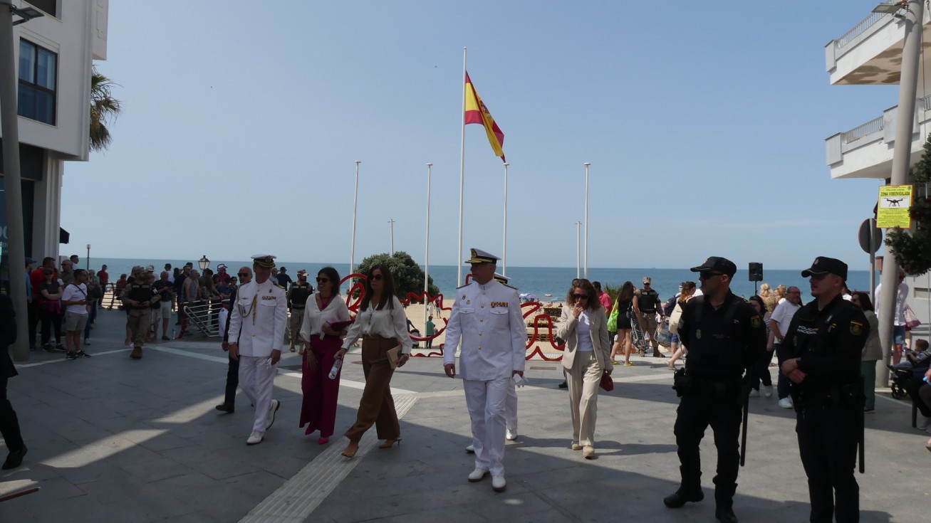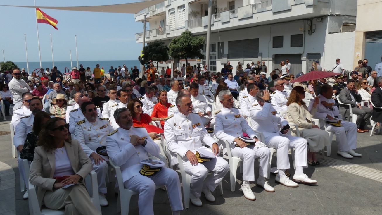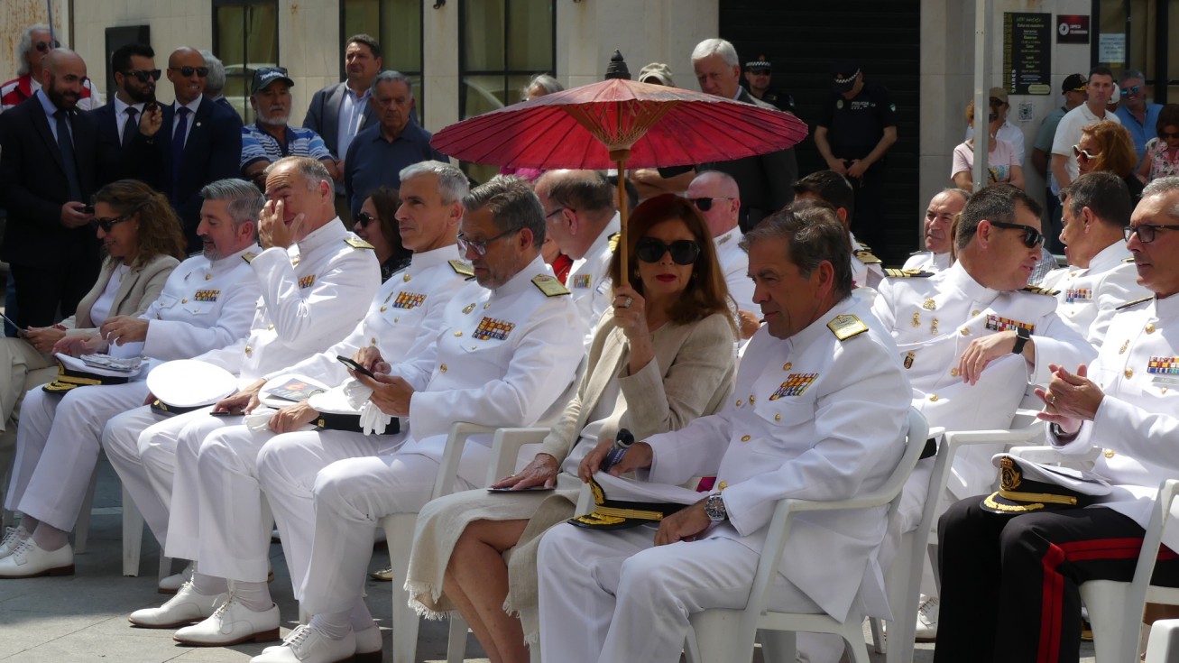 Con la llegada de los integrantes de la unidad de honores desfilando por el paseo marítimo para posicionarse en el centro de la bajada de la plaza Jesús Nazareno daba comienzo la ceremonia que ha estado presidida por el almirante jefe para el Arsenal de Cádiz (Alardiz), el vicealmirante Rubén Rodríguez Peña, el almirante de la Flota, Eugenio Díaz del Río Jáudenes, y el alcalde de Rota, Javier Ruiz Arana. Junto a ellos, se han posicionado otras autoridades civiles como la subdelegada del Gobierno de España en Cádiz, Blanca Flores, el delegado territorial de la Junta de Andalucía, Alfonso Candón, concejales de la Corporación municipal y una amplia representación militar.