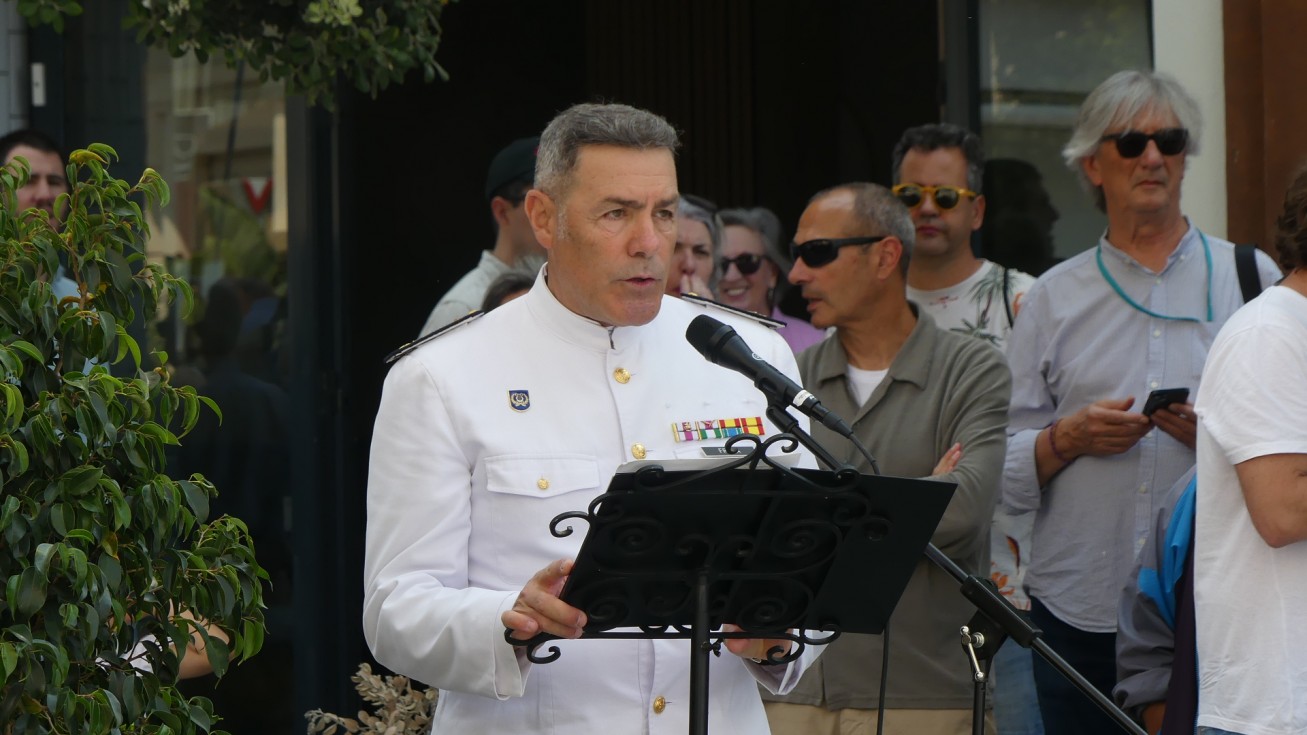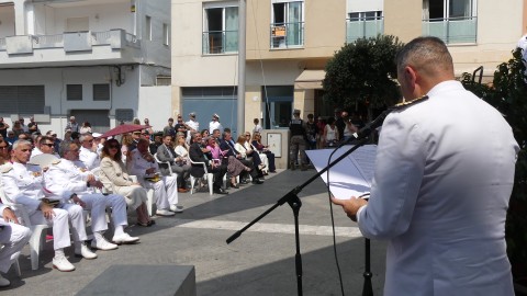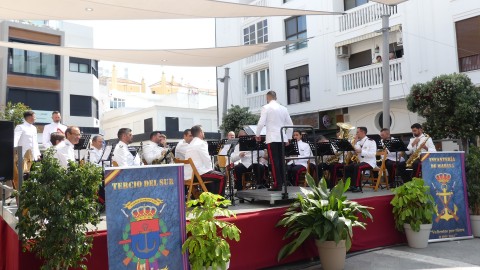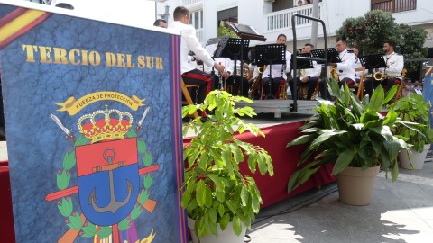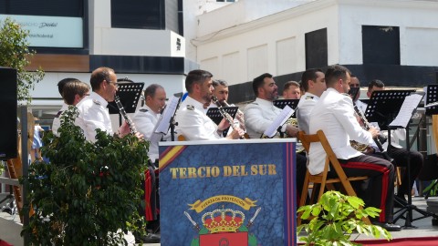 Tras las breves palabras, dos representantes de la Armada se han encargado de llevar a lo alto del mástil la insignia terminando así el momento que ha dado paso al concierto que ha ofrecido en la plaza Jesús Nazareno, al aire libre, la Unidad de Música del Tercio Sur.