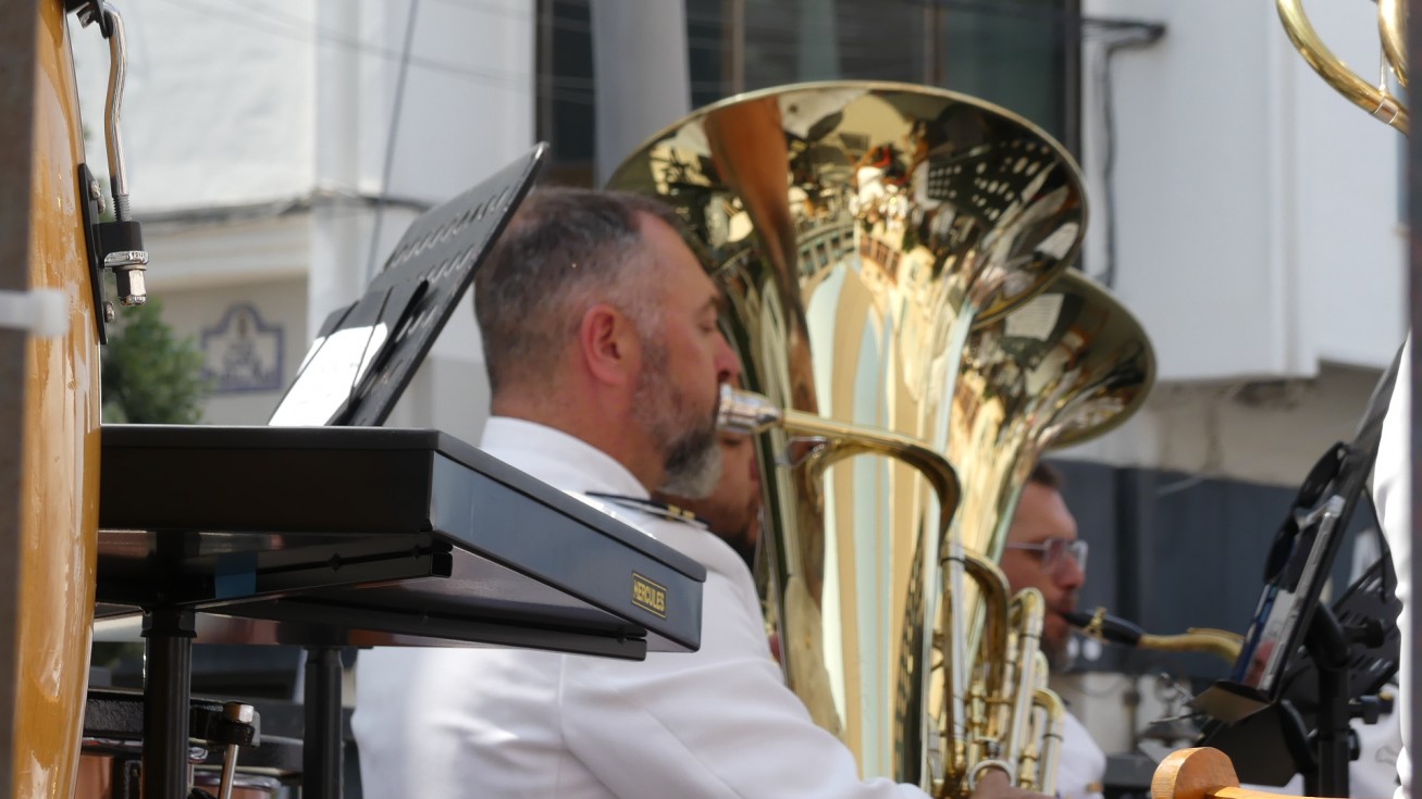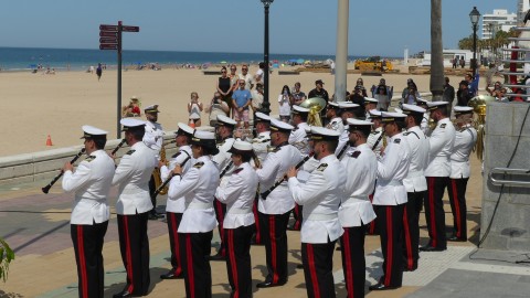 El público ha disfrutado de marchas como 'Jubilee Royal March' de W. Laseroms, del mítico 'My way' de Frank Sinatra, la canción 'Viejos camaradas' de C. Teike, el pasodoble 'Agëro' de J. Franco, la canción 'Sandpaper Ballet' de L. Anderson, la marcha 'Marcha of the women marines' de L. Saverino, de la canción 'Highway to hell' en la versión de AC/DC, del pasodoble 'La bejarana' de F Alonso y Serrano, y de 'Soldadito marinero' de Fito y Fitipaldis. Un concierto aplaudido por el buen hacer de los músicos que ha aportado a esta mañana de sábado un toque distinto en el que se mezclaban ciudadanos que habían acudido expresamente para disfrutar de la música con los que a esa hora, bajaban a la playa para una jornada en el mar.