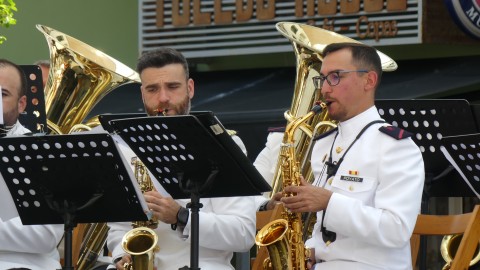 Roteños y visitantes han escuchado algunas de las piezas ofrecidas por esta formación musical de la Armada española, que ha elegido para la ocasión un variado repertorio de canciones de distintos estilos que ha llenado de música la mañana de este sábado soleado en el que las buenas temperaturas se han dejado notar, pese a los toldos colocados para tener algo de sombra.