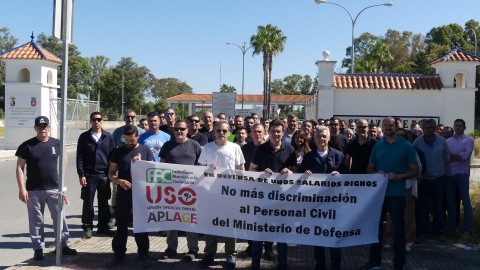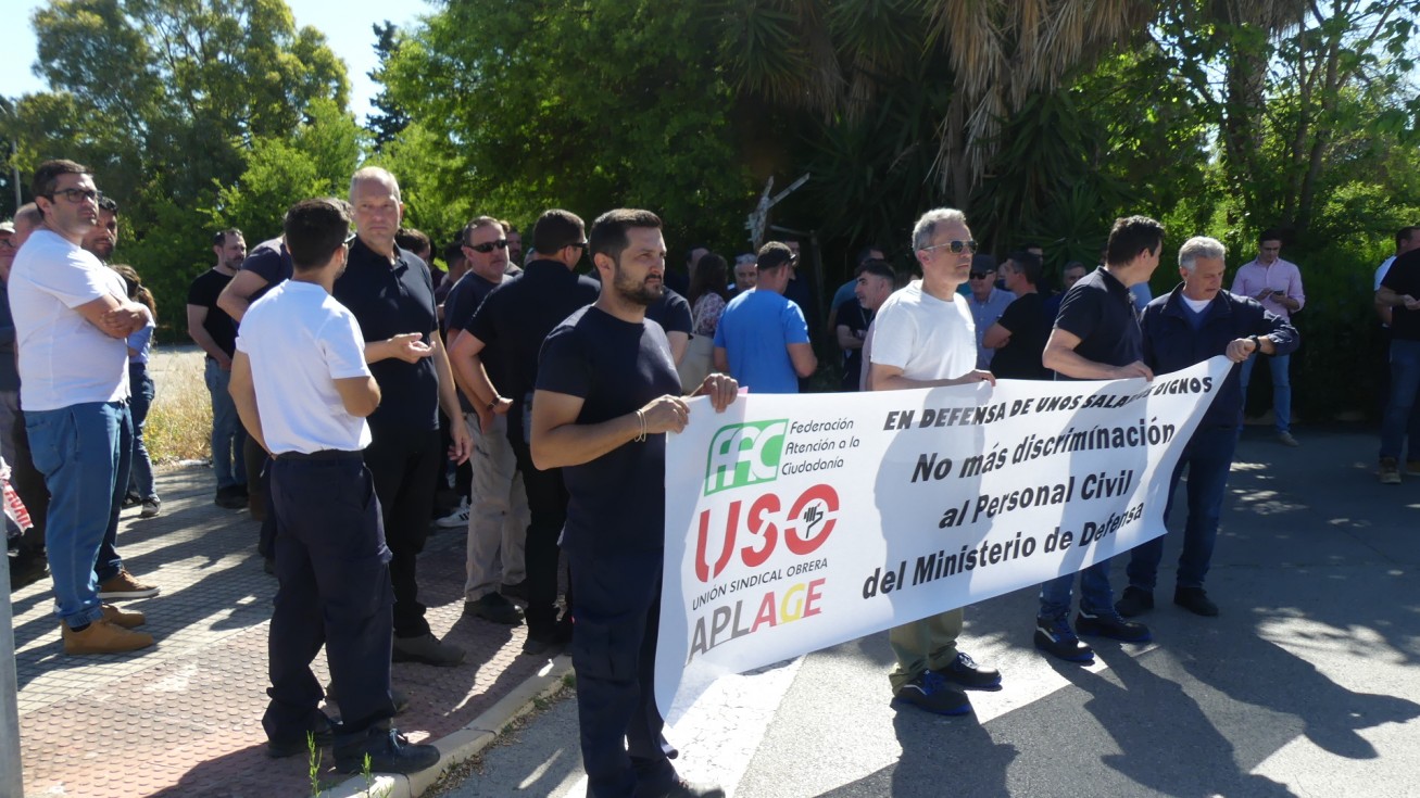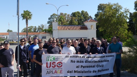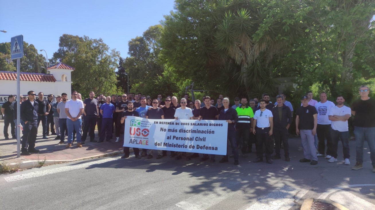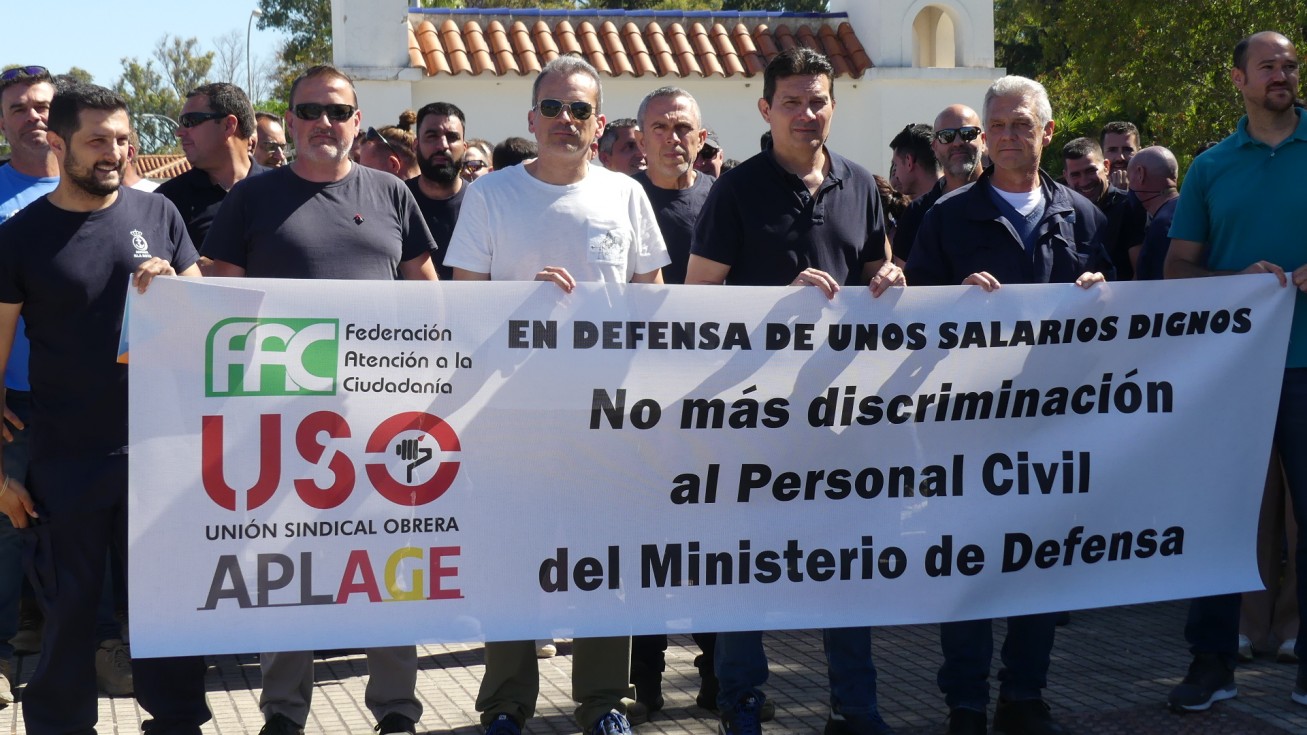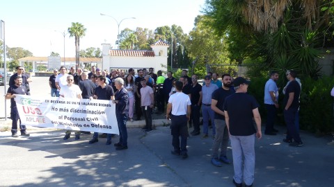 A las puertas de la Base Naval de Rota se ha concentrado esta mañana una amplia representación del personal civil que trabaja en el recinto militar adscrito al Ministerio de Defensa para pedir un trato justo y la misma subida salarial que recibirán sus compañeros militares de los mismos departamentos.