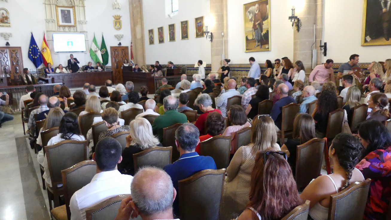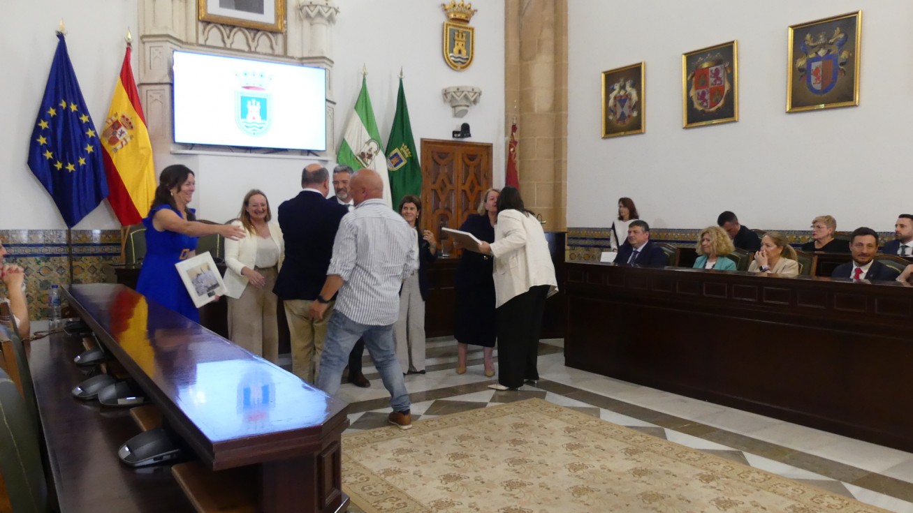 Aquellos trabajadores que han cumplido 20, 30, 35 y 40 años de servicio en el Ayuntamiento de Rota, además de las empresas municipales Modus o el Centro de Empleo 'Torre de la Merced' y los jubilados el año pasado han recibido el aplauso y reconocimiento de sus compañeros, que han llenado el salón de plenos, y de la Corporación municipal.