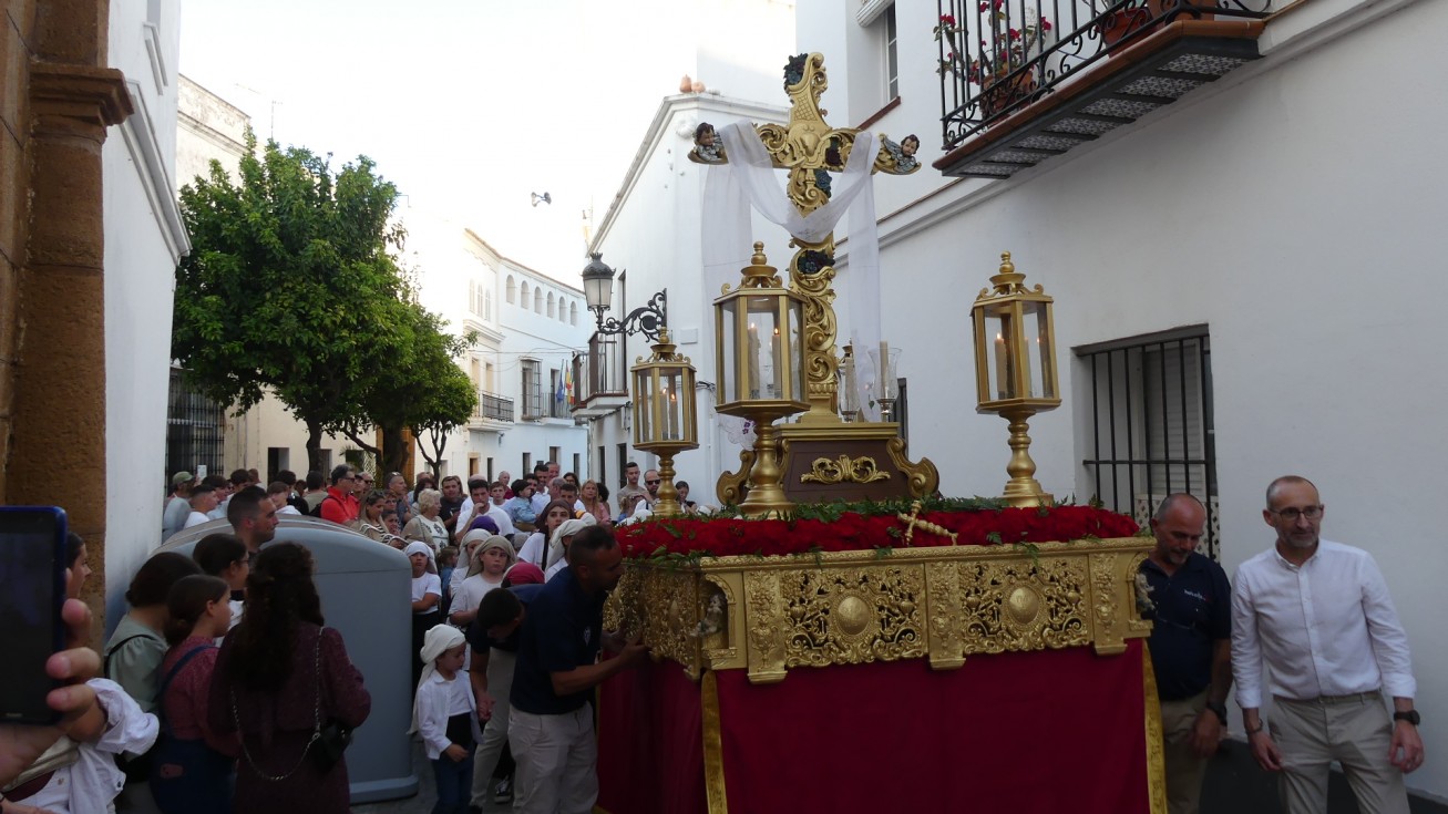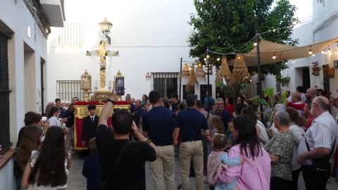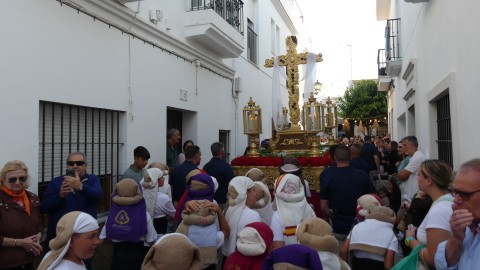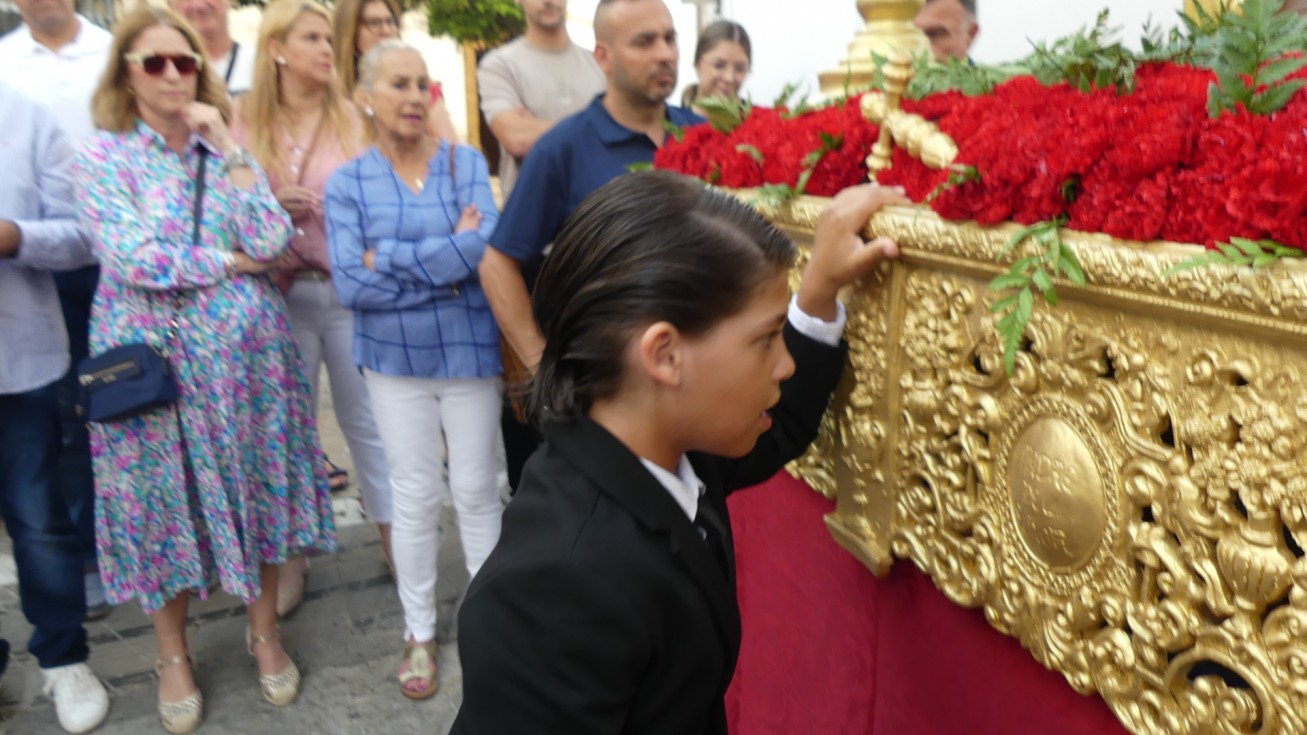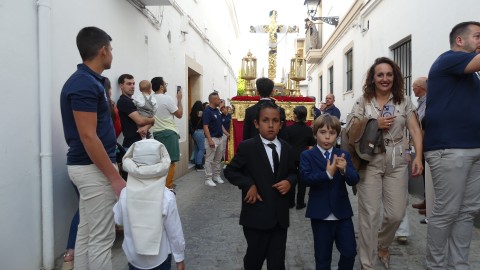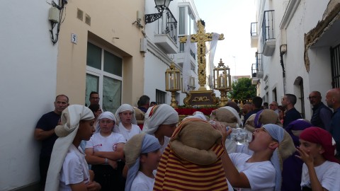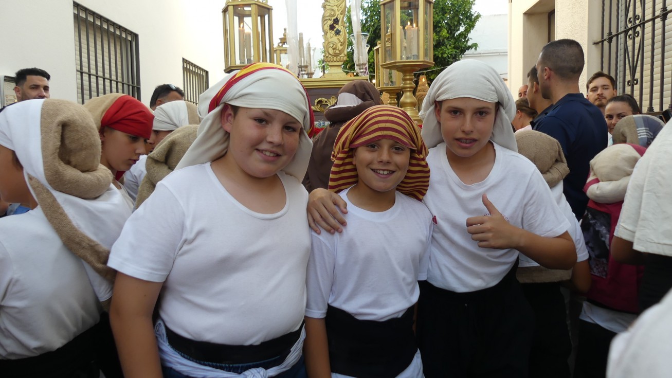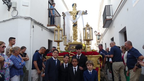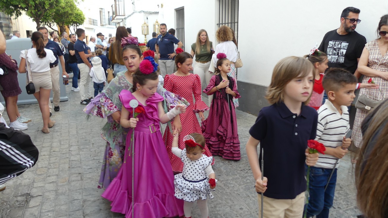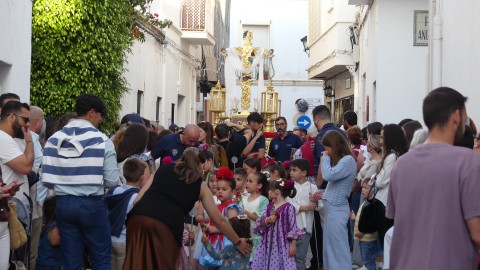 Con un cortejo precedido por varias niñas vestidas de flamenca y algunos niños, ha arrancado esta cita anual que cumple 40 ediciones sin perder la tradición de que en el mes de mayo, salga la cruz dorada que preside un paso que ha portado una amplia cuadrilla de costaleros que se ha ido dando el relevo y con ello, poniendo la nota más entrañable de esta salida. Y es que si algo llama la atención del paso, es quién lo carga y las ganas que le ponen los capataces y contraguías, niños de corta edad que demuestran sus dotes y apuntan maneras para el futuro mundo de las hermandades.