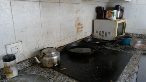 La segunda parte de esta historia viene ahora. Rocío pudo volver a su vivienda de la barriada San Antonio y lo que encontró fue un basurero, un domicilio donde, como ha comprobado este mismo medio, es imposible estar sin mascarilla y aún así, el olor es nauseabundo. Muebles destrozados, sofás inservibles y rotos, excrementos de perros por el suelo, restos de comida en platos sucios en barreños siendo un foco total de infección, fregadero atascado con agua estancada y comida flotando, vitrocerámica llena de suciedad, muebles de la cocina que eran blancos totalmente amarillos, puertas rotas, baño en unas condiciones insalubres, enseres acumulados por el suelo en toda la casa y, en definitiva, una situación que mantiene desesperada a esta mujer.