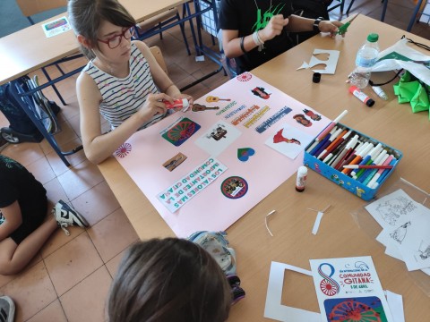 Estos audiovisuales se completan con actividades lúdicas que se plantean a los escolares, como los juegos 'La rueda', de preguntas y respuestas sobre la cultura gitana, un juego de mesa para aprender algunas palabras, la elaboración de una bandera gitana colectiva mediante la técnica del collage, juegos de tarjetas de memoria sobre el caló, realización de murales en grupo sobre algunos rasgos y valores de la cultura gitana, etc.