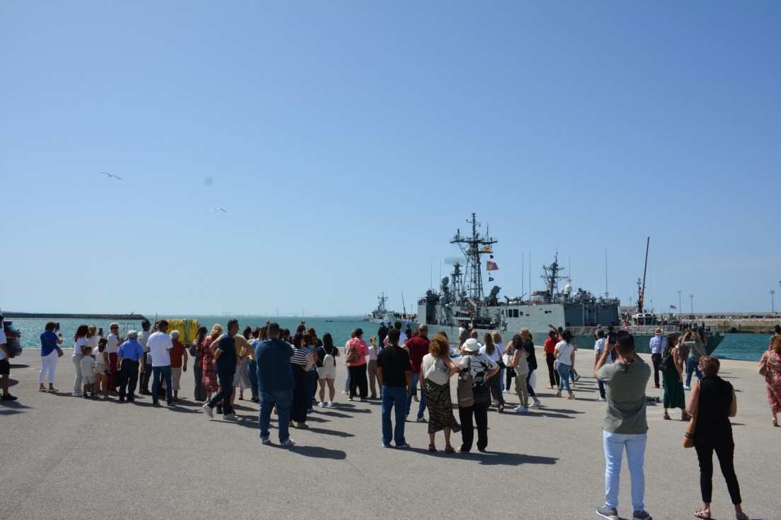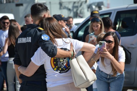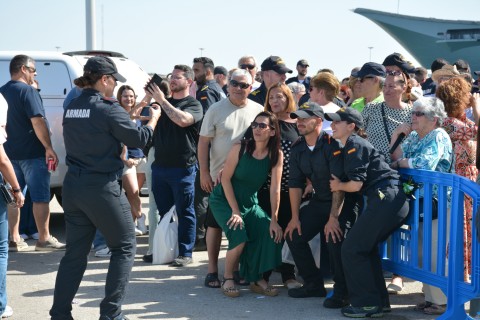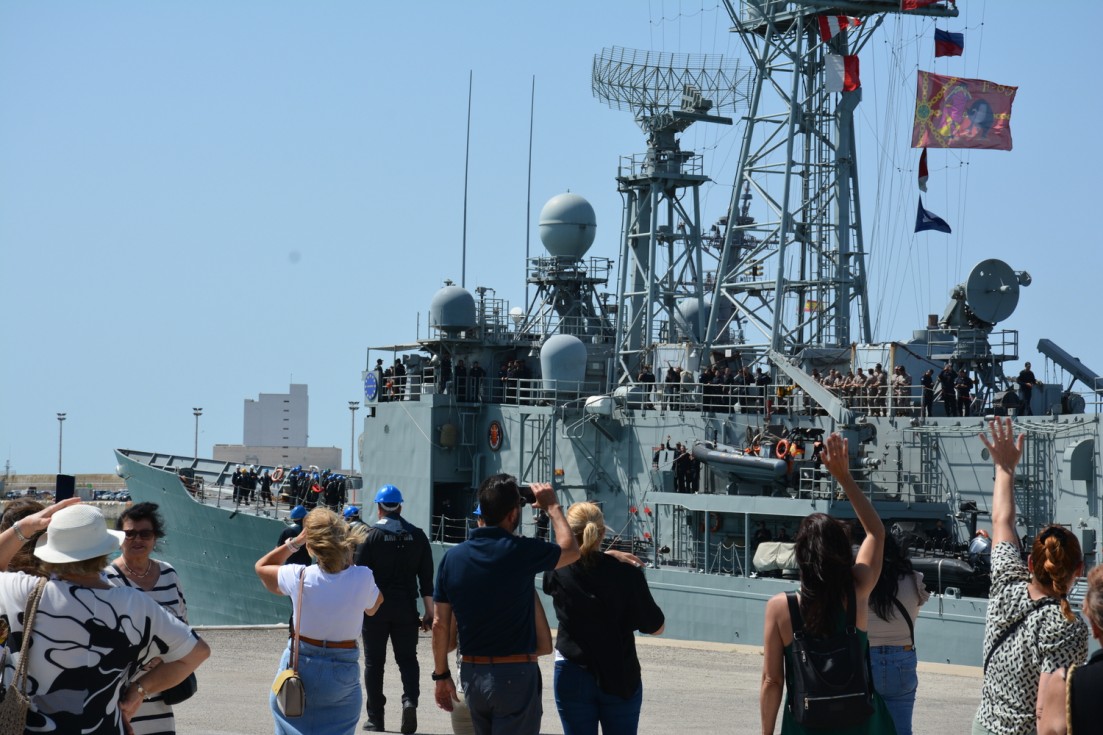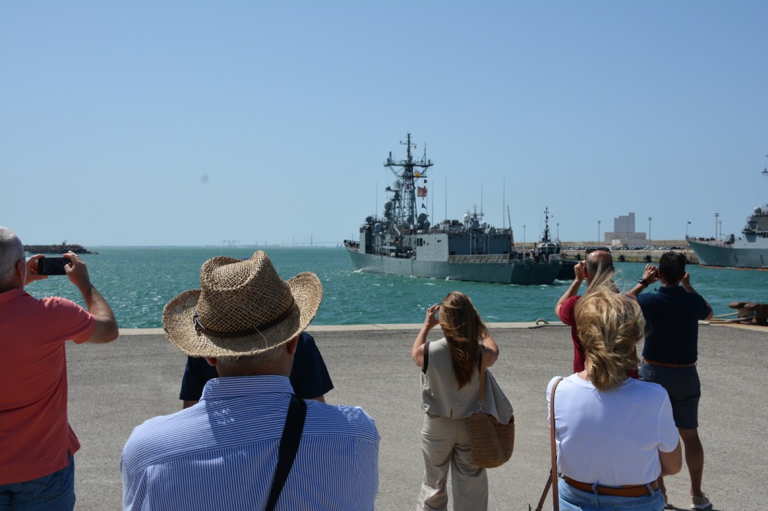 La dotación y la fuerza embarcada, una vez entonado el himno de la Armada, pudieron despedirse de familiares y amigos en el muelle antes de iniciar la navegación.