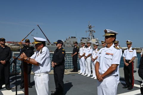 El acto de despedida ha estado presidido por el almirante de la Flota, Eugenio Díaz del Río Jáudenes, quien ha dirigido unas emotivas palabras de aliento, tanto a los 220 hombres y mujeres que componen la fuerza, como a sus familiares. El almirante de la Flota ha reseñado lo importante de este despliegue para la Armada y para España al objeto de mantener la libertad de navegación en zonas de interés estratégico, como es el océano Índico: “se trata de una misión que cada vez es más exigente y os felicito por el tremendo esfuerzo que habéis realizado para poner a punto la fragata y estar preparados para cualquier escenario”, ha subrayado.