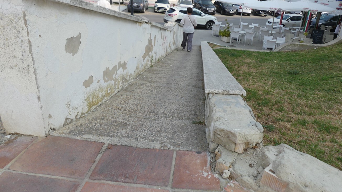 El problema más urgente, indican a este medio, es que se arreglen los problemas de filtraciones porque afecta a los garajes, que cuando llueve se inundan y les genera problemas de humedades e incluso, apuntan, temen que el estado de algunas zonas del techo del subterráneo acabe desprendiéndose. En segundo lugar, señalan el acceso a la plaza, en el que se ven numerosos desperfectos en los escalones de la escalera, algunos hasta con hierros al descubierto que generan peligro, y losas rotas; así como el estado de la rampa de acceso que, además de que tiene demasiada pendiente, lo que no da seguridad a las personas con movilidad reducida, está igualmente en un estado deplorable. Por último, y no menos importante, está la lamentable situación del mirador hacia la playa del Chorrillo. La valla está completamente oxidada, algunos de los anclajes prácticamente ya no existen y aunque desde 2022 tienen una barrera de seguridad colocada por el propio Ayuntamiento para evitar el paso de personas ante el peligro para usuarios, la realidad es que nunca se ha actuado.