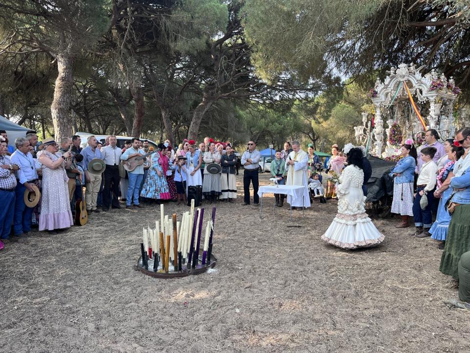 Esta mañana sin ir más lejos, los romeros roteños han podido vivir la boda que ha celebrado una pareja de rocieros, con 53 años de Rocío a sus espaldas, durante la eucaristía de la mañana, oficiada por el director espiritual de la hermandad, Roberto Romero. Emoción y mucho cariño entre quienes lo acompañaban en ese día especial.