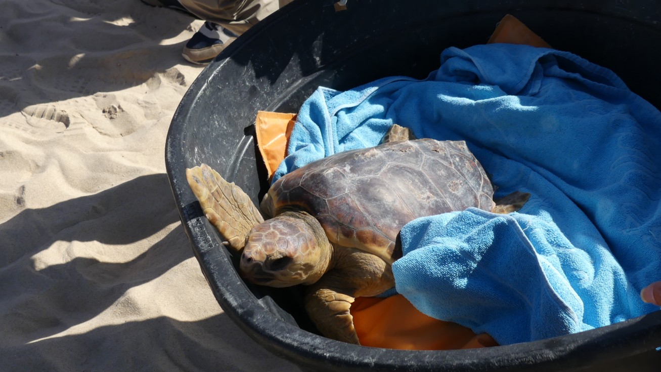 Las tortugas llevan un chip por si son recapturadas, se pueda acceder a más información sobre ellas, pero a veces, también se les coloca una marca satélite que permite obtener datos sobre su ruta de navegación. Es una forma de investigar más sobre estas especies de tortuga carettas carettas, de las más comunes en Andalucía.