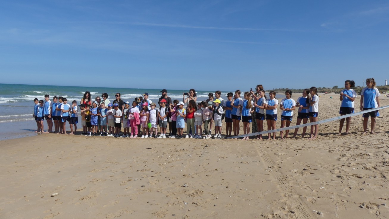 A la actividad se han sumado alumnos de los colegios Picacho de Sanlúcar, con estudiantes de 1º y 2º curso, y de Nuestra Señora del Perpetuo Socorro de Rota con escolares de 5º y 6º, que previo a la suelta de tortugas han participado en unos talleres medioambientales que pretenden generar conciencia sobre la importancia de cuidar el entorno natural y hacer ver que muchas acciones diarias influyen en la vida de la fauna y la flora.