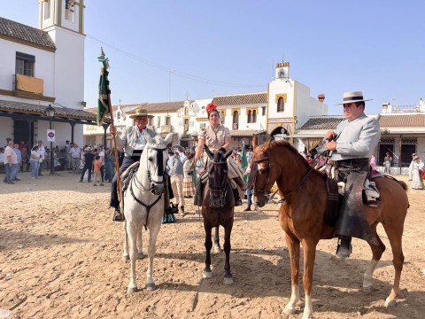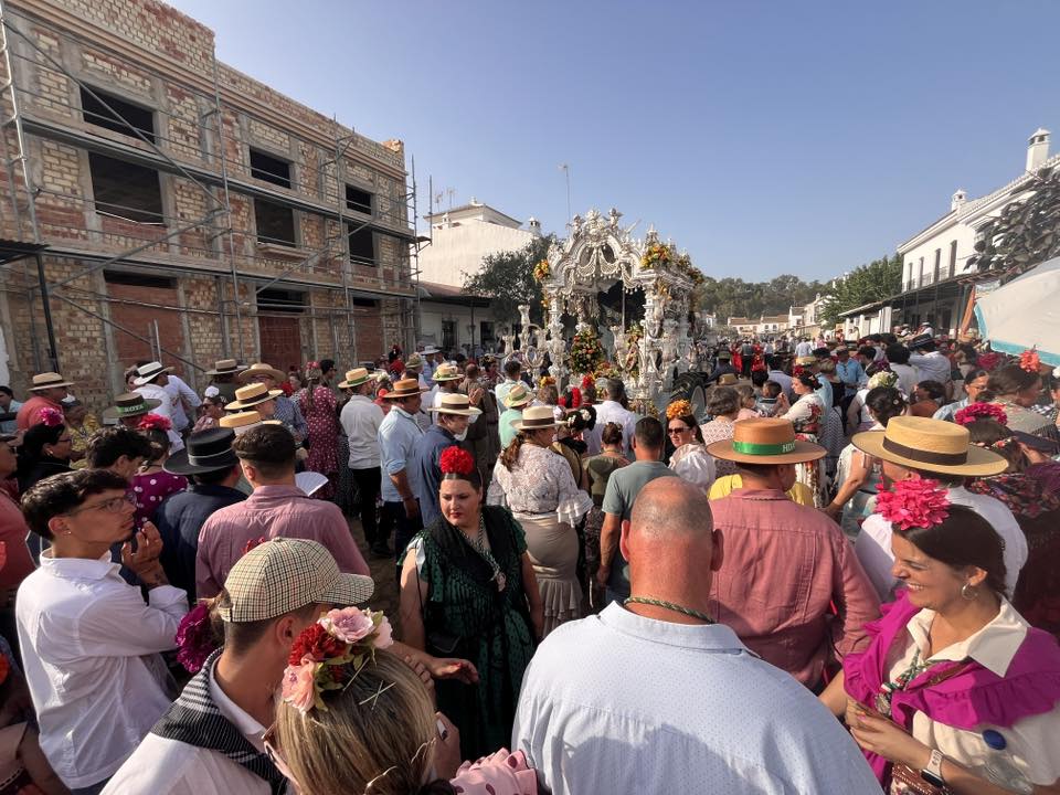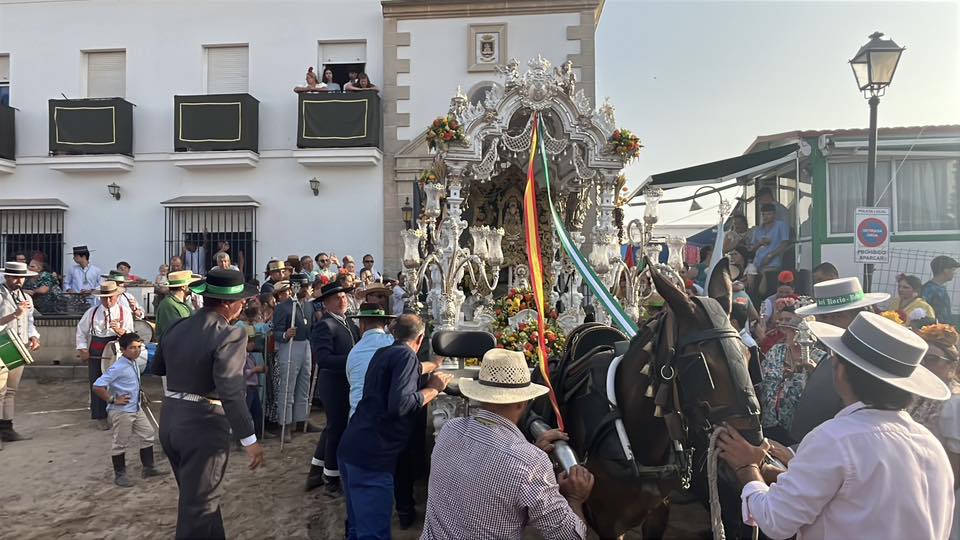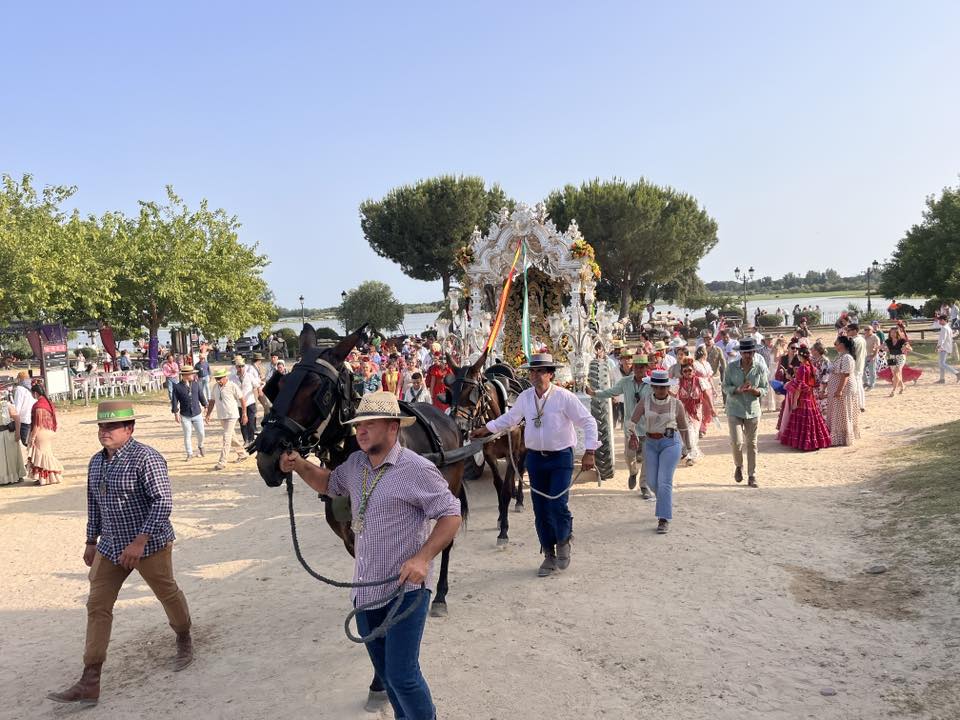 Desde por la mañana, se limpiaba y se preparaba la carrera blanca, adornada con flores en la casa hermandad para uno de los grandes momentos de esta romería. El cortejo se organizaba con varas, banderas, una pequeña representación a caballos, los piteros y un buen grupo de hermanos a pie acompañando al Simpecado de la Hermandad de Nuestra Señora del Rocío.