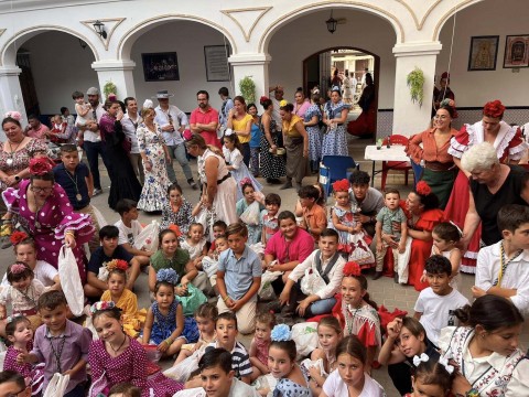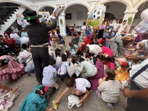 También los pequeños tuvieron su momento en el patio con una fiesta infantil de animación, piñatas y juegos, porque para ellos, también se piensa en esta romería donde diversión y fe se mezclan y van de la mano.
