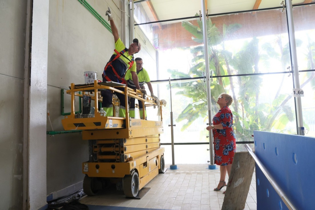 La delegada municipal de Deportes, Luisa Fernández, ha comprobado esta misma mañana el desarrollo de esta actuación que se realiza de manera regular cada año y que permite que la piscina mantenga "sus estándares de calidad y confort". Según ha detallado la concejal, los trabajos incluyen el tratamiento de legionela, el tratamiento íntegro de desinfección y la limpieza de agua fría y caliente, cumpliendo así con la normativa sanitaria en vigor. Además, también se está actuando sobre las instalaciones pintando el interior y el exterior de la piscina; realizando reparaciones en techos y ventanas; y llevando a cabo reparaciones de fontanería.