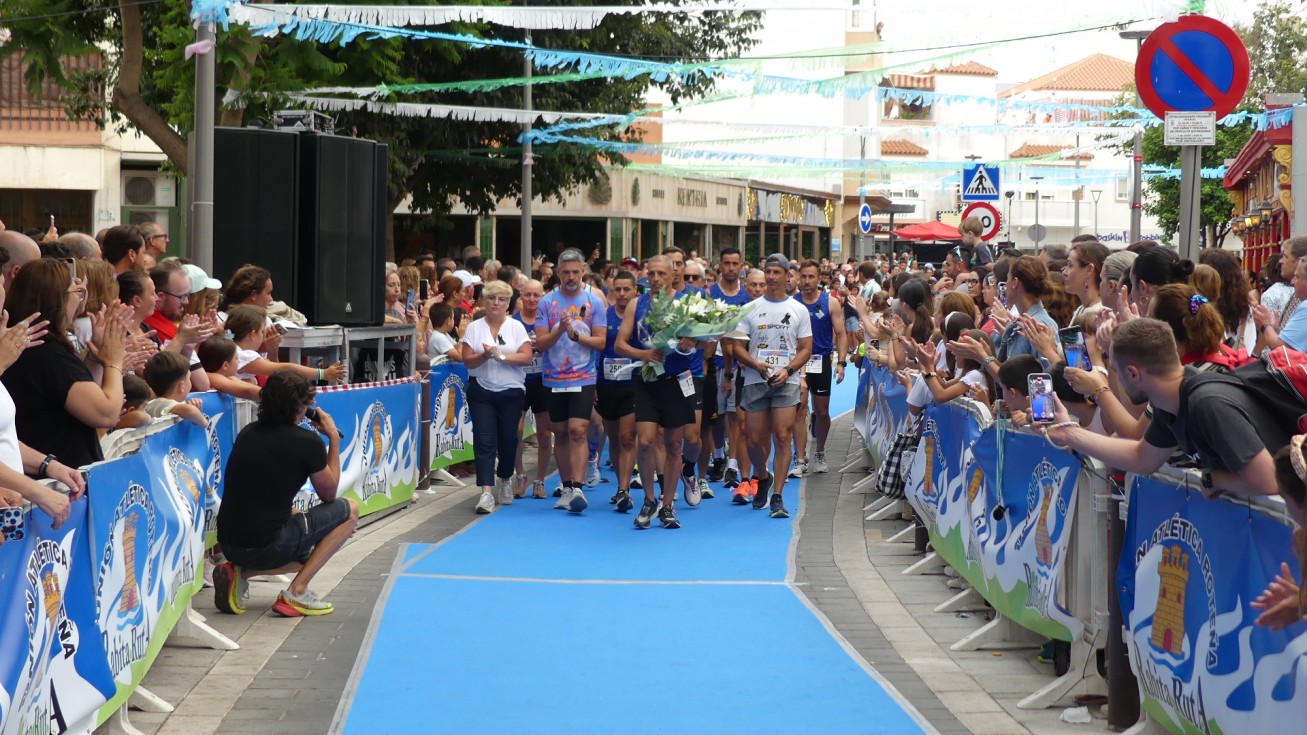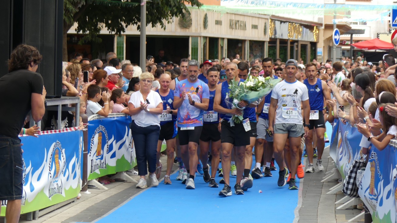 Amigos triatletas de Álvaro, junto al alcalde de Rota Javier Ruiz, y la delegada de Deportes, Luisa Fernández, que lucían crespón negro en el pecho como otros corredores, y un buen grupo de corredores y del Club Triatletas Roteños, han hecho un pequeño paseíllo por la avenida San Fernando con un ramo de flores en las manos en dirección al arco de meta que tantas veces ha pasado Álvaro. Ha sido la forma sencilla de recordarlo y mostrar la pena que invade a todos sus seres queridos. En el arco de meta, la familia y amigos de Manuel Castellano, con bandera y camiseta del Betis, el equipo de sus amores, también depositaba al otro extremo otro ramo de flores. Lágrimas no solo en quienes lo conocían sino en buena parte del público que esperaba en los laterales de la avenida San Fernando una carrera que ha estado marcada en su inicio por el recuerdo de estos dos roteños.