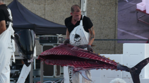 Con una gran pantalla desde la que se pudo seguir cada uno de los cortes que el ronqueador iba dando a la gran pieza, los asistentes conocieron más acerca de este pescado del que prácticamente se aprovecha todo para distintas recetas como así fue indicando el presentador.