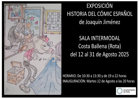 La Sala Intermodal de Costa Ballena albergará del 12 al 31 de agosto de 2025 la exposición "Historia del Cómic Español" del cordobés Joaquín Jiménez, operador de cámara y fotógrafo profesional que, movido por su pasión por el dibujo, ha decidido rendir homenaje al cómic nacional y a sus grandes referentes con esta muestra única.
