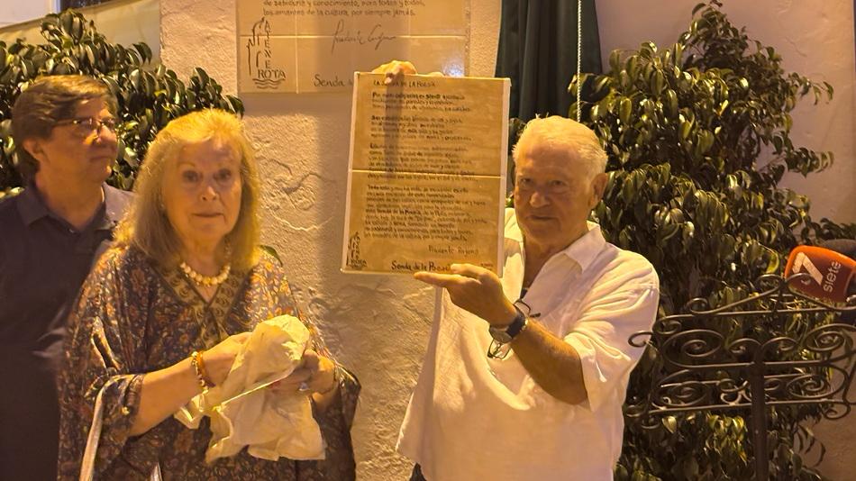 En el Callejón del Castillo, uno de los rincones con más historia del casco antiguo de Rota, tiene desde ayer por la noche un nuevo motivopor el que detenerse. La Senda de la Poesía, que recorre el centro histórico con versos de autores locales y nacionales, suma ya catorce azulejos gracias a la incorporación de un poema de Prudente Arjona Lobato, vecino muy querido por su labor constante en el ámbito cultural y asociativo del municipio.