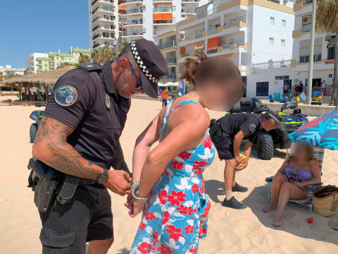 En el simulacro de seguridad se abordó una situación simulada de una persona intentando vender droga a los usuarios del paseo, que es detectada y detenida por agentes de la Policía Local de servicio en la playa.
