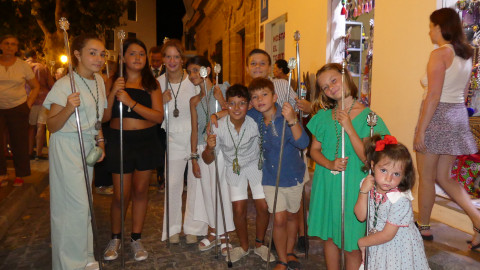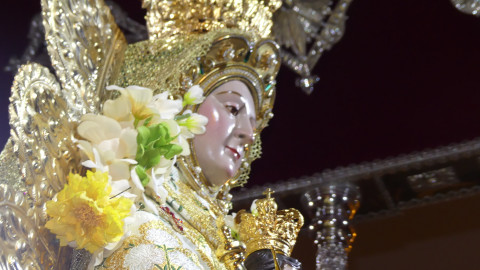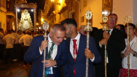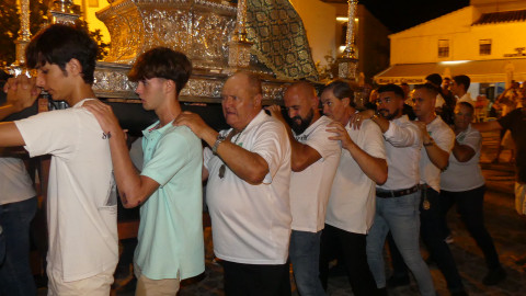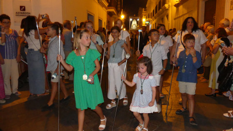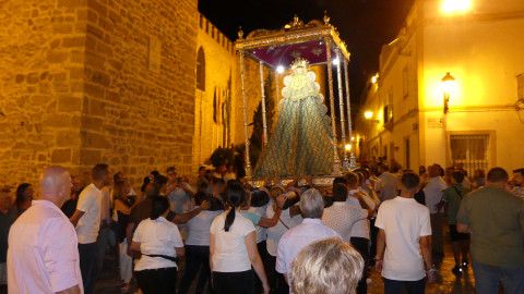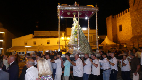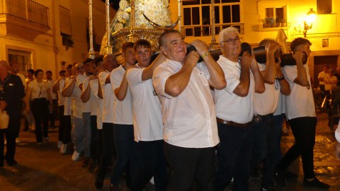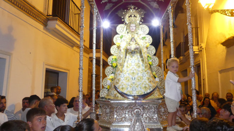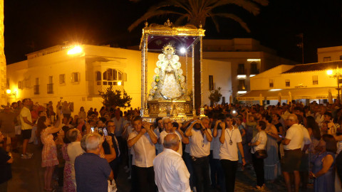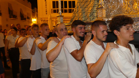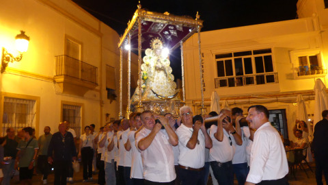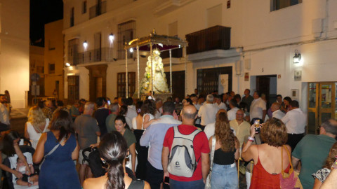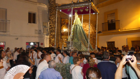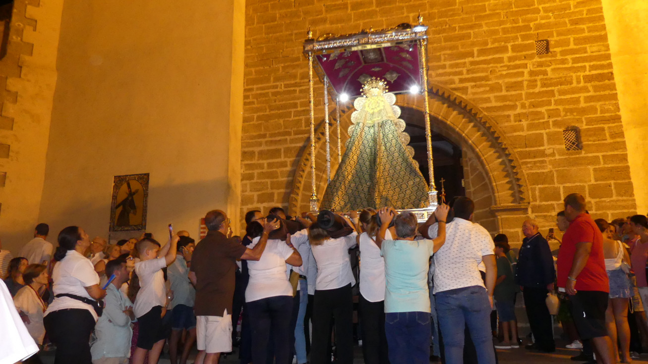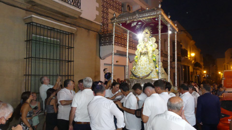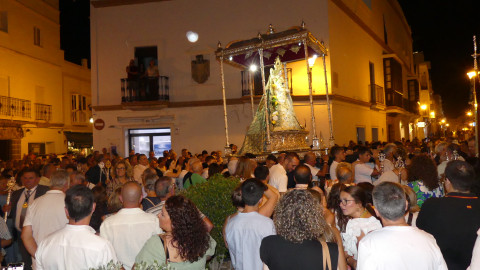 La del Rocío es una procesión que en Rota se vive cada agosto de manera muy particular, donde se da la oportunidad a devotos a cargarla sobre sus hombros, viviendo así en pleno verano la alegría de ver a la virgen en la calle.
