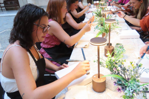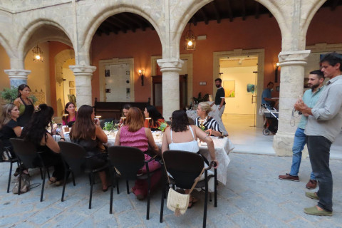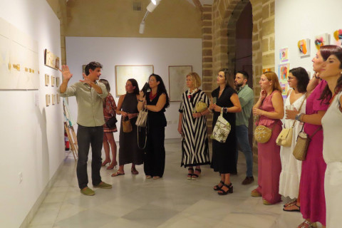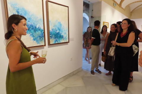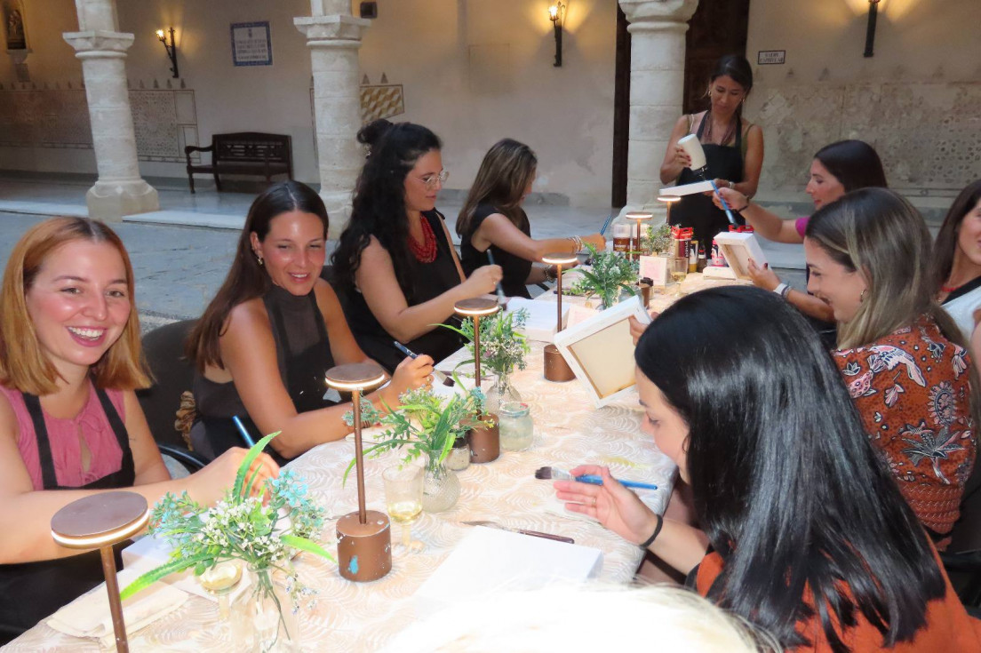 La exposición se inauguró con un novedoso y atractivo taller de "Paint &Wine"