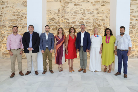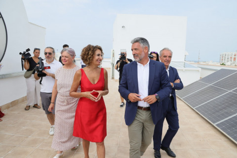 La vicepresidenta primera del Gobierno y ministra de Hacienda, María Jesús Montero, ha visitado hoy Rota para conocer el resultado de la rehabilitación integral del antiguo Ayuntamiento, situado en la Plaza de España, acompañada por el alcalde de la localidad, Javier Ruiz Arana.